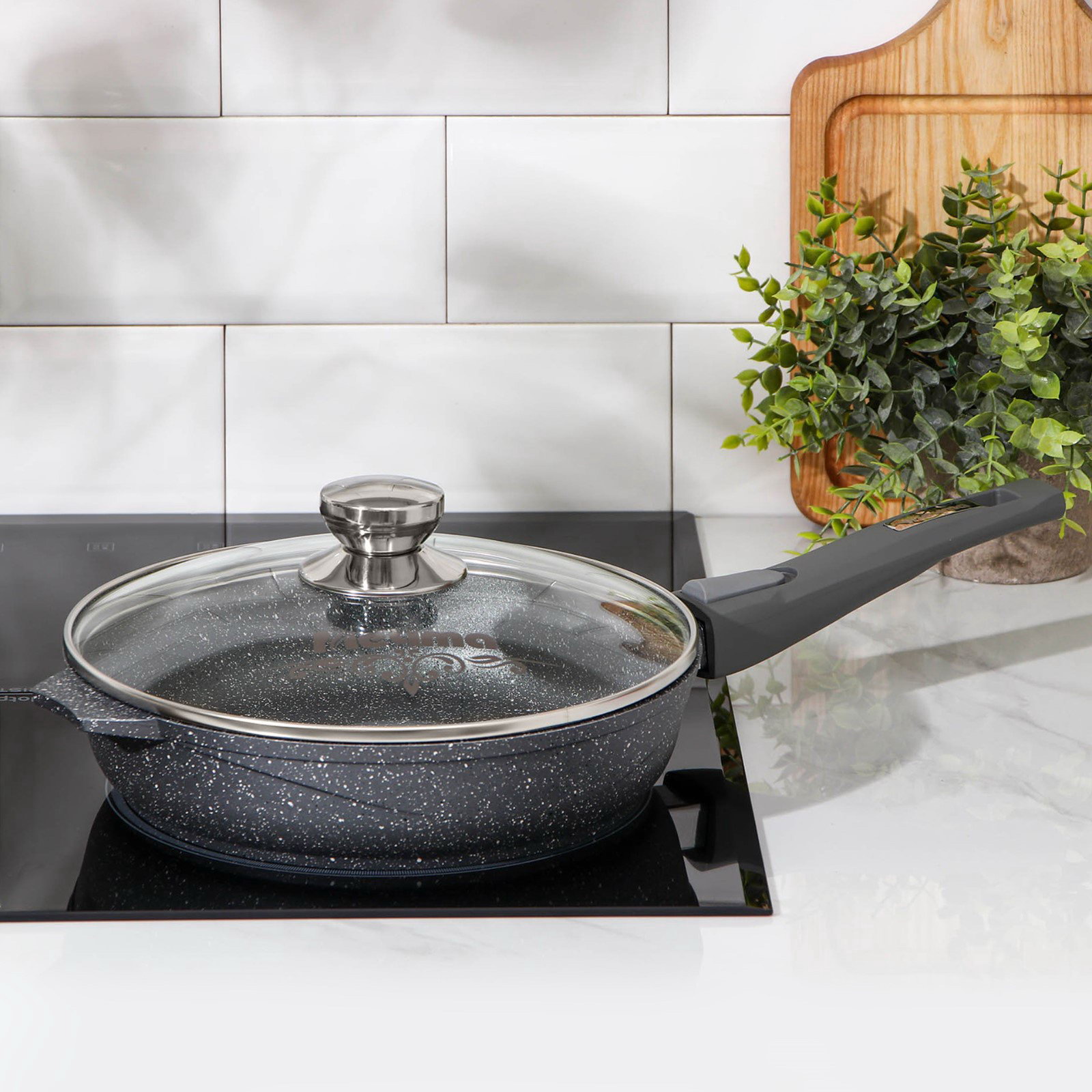 Сковорода "Гранит", d=24 см, съёмная ручка, антипригарное покрытие, стеклянная крышка, литой алюминий, серая, 24 см., Мечта, Россия