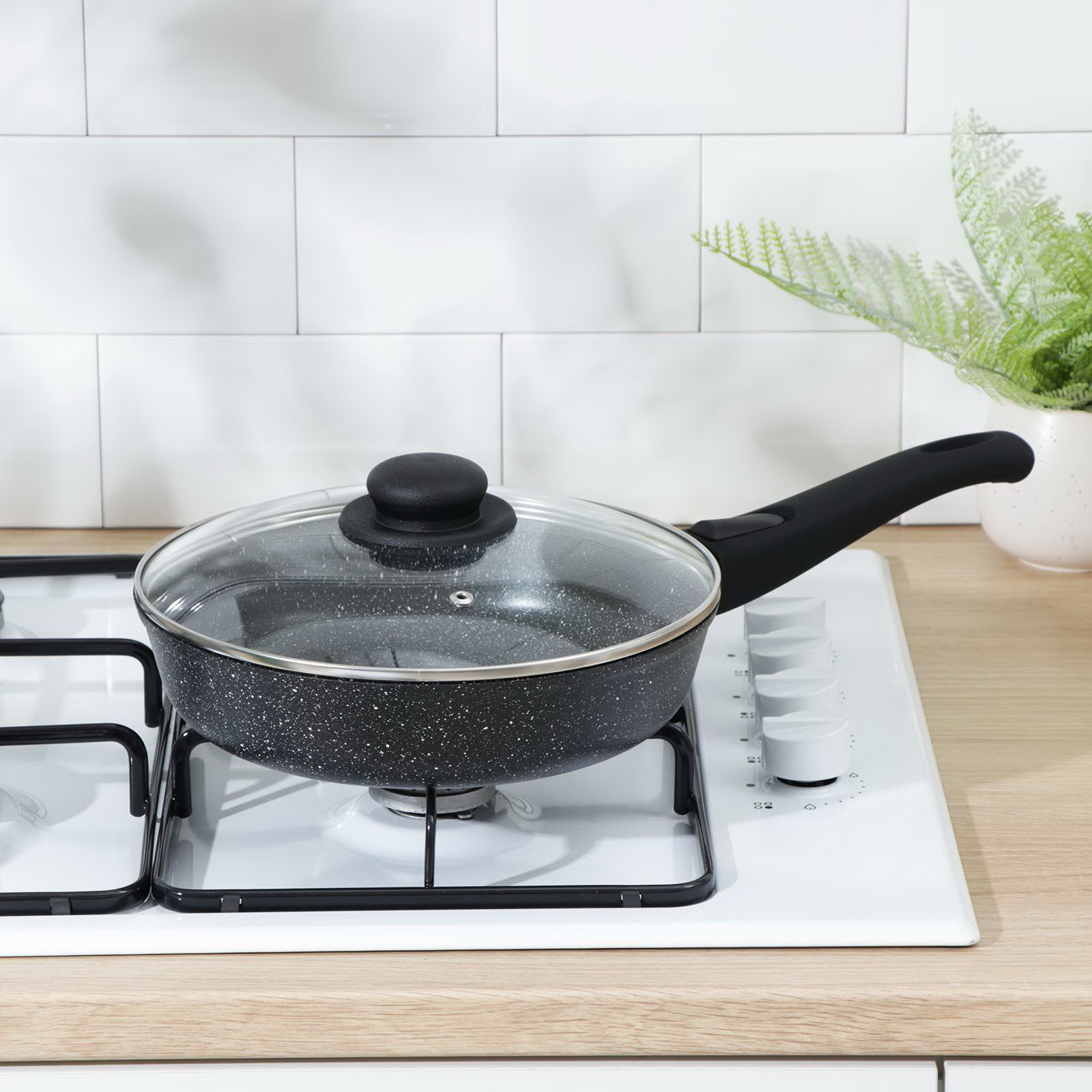 Сковорода "Элит", d=24 см, пластиковая ручка, стеклянная крышка, антипригарное покрытие, цвет чёрный, 24 см., Доляна, Россия