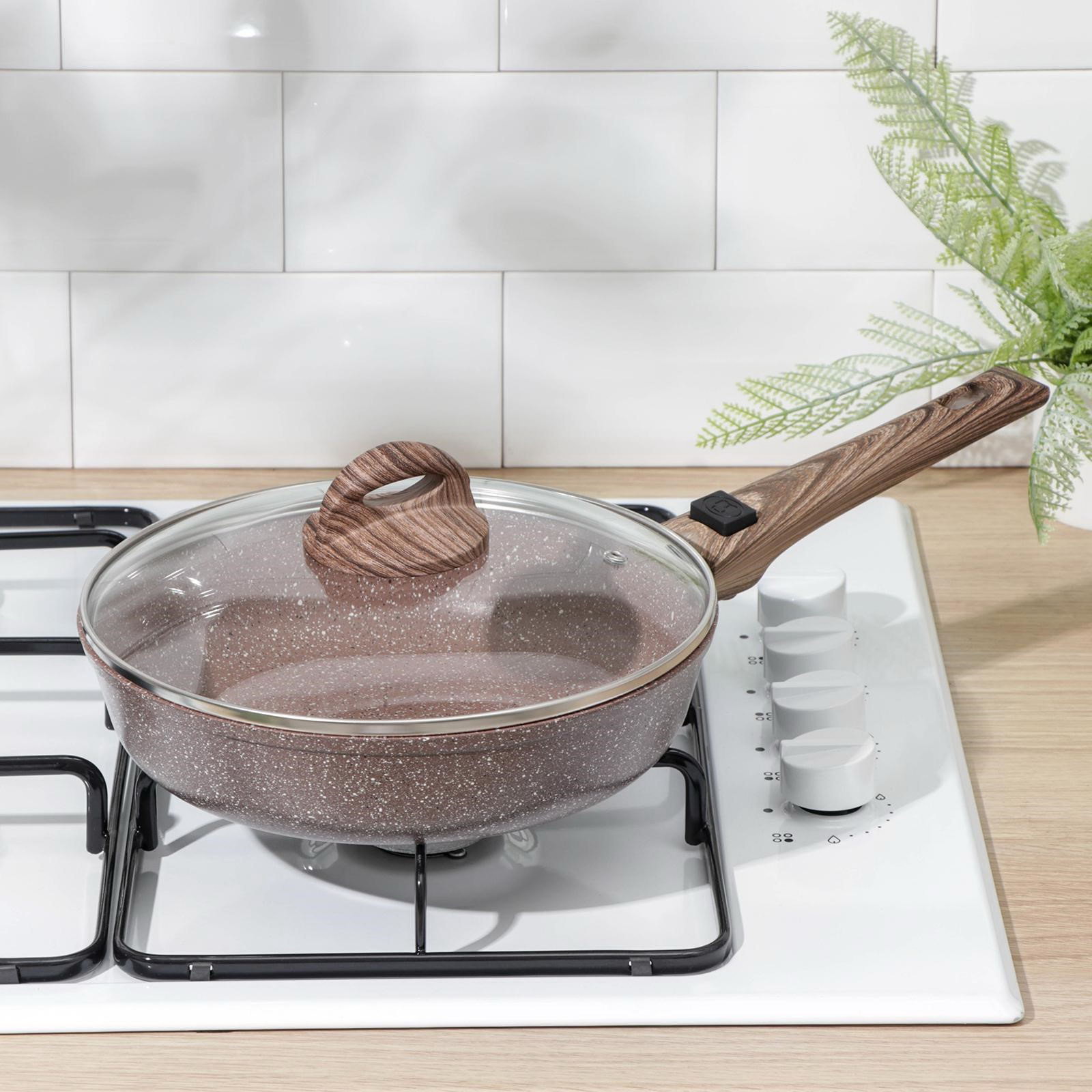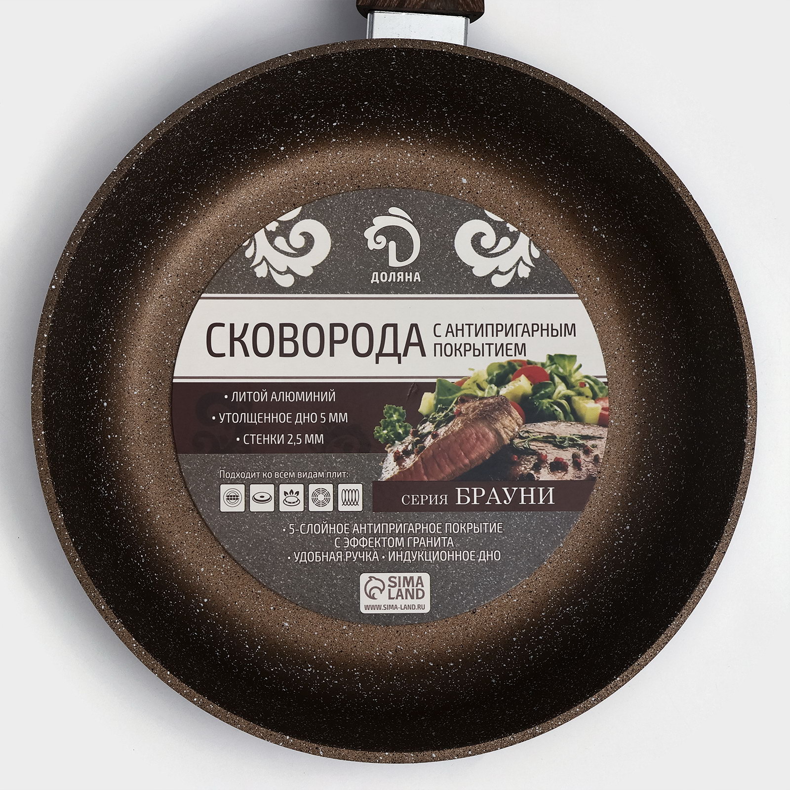 Сковорода "Брауни", d=24 см, съёмная ручка, стеклянная крышка, антипригарное покрытие, индукция, алюминий, коричневая, 24 см., Доляна, Россия