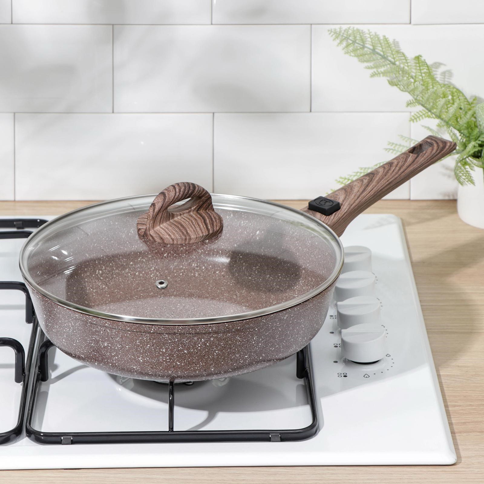 Сковорода "Брауни", d=26 см, съёмная ручка, стеклянная крышка, антипригарное покрытие, индукция, алюминий, коричневая, 26 см., Доляна, Россия