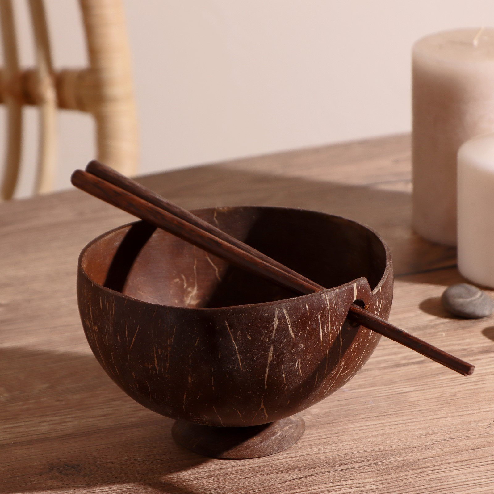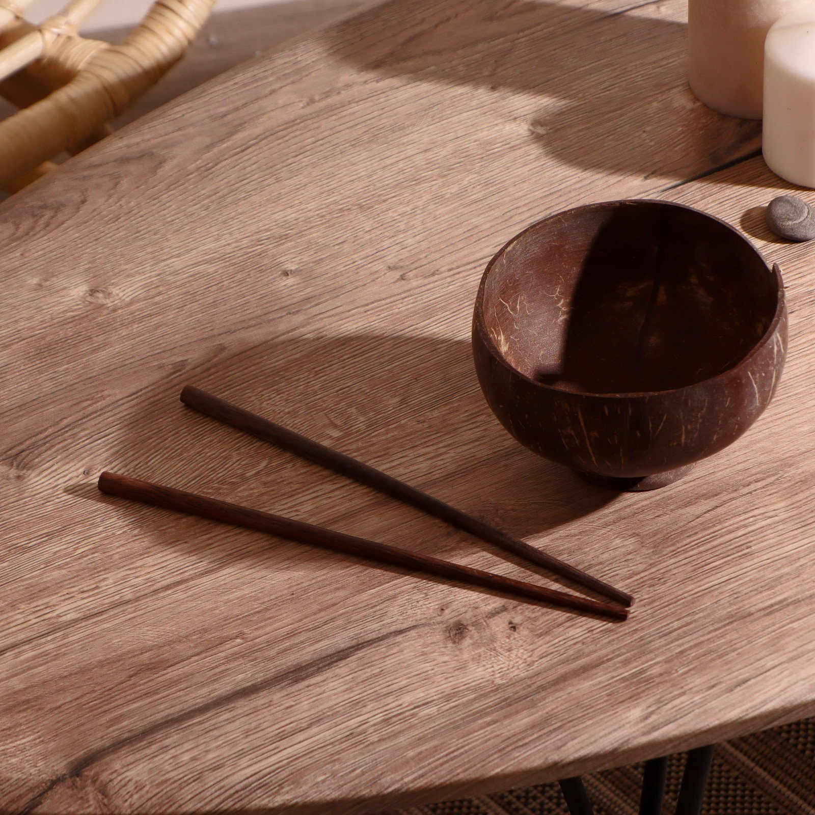 Тарелка с палочками из кокоса "Трапеза" 15х15х10 см, 15х15х10 см., Индонезия