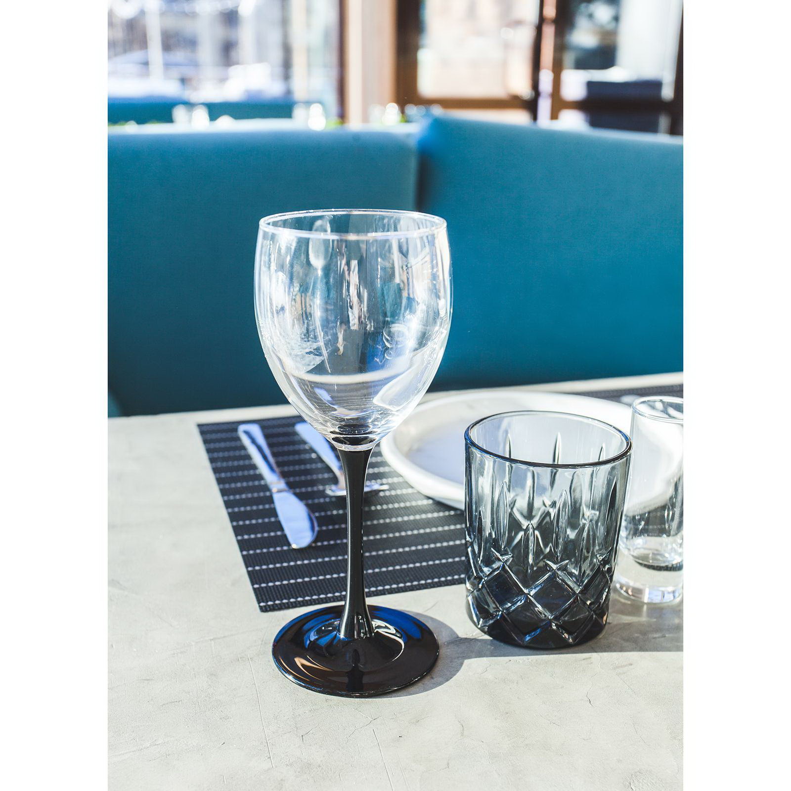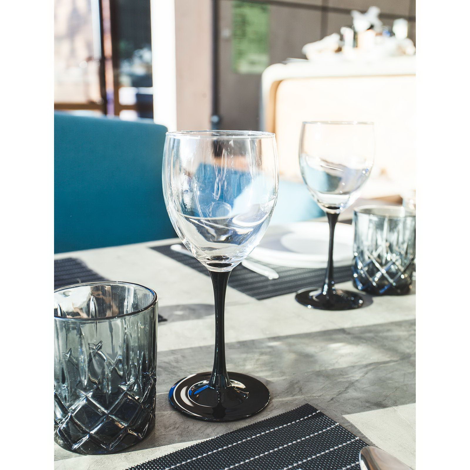 Бокалы для вина Domino, 350 мл, набор 6 шт., стекло, прозрачные, чёрная ножка, 21.5x17.5x26.5 см., Luminarc, Россия