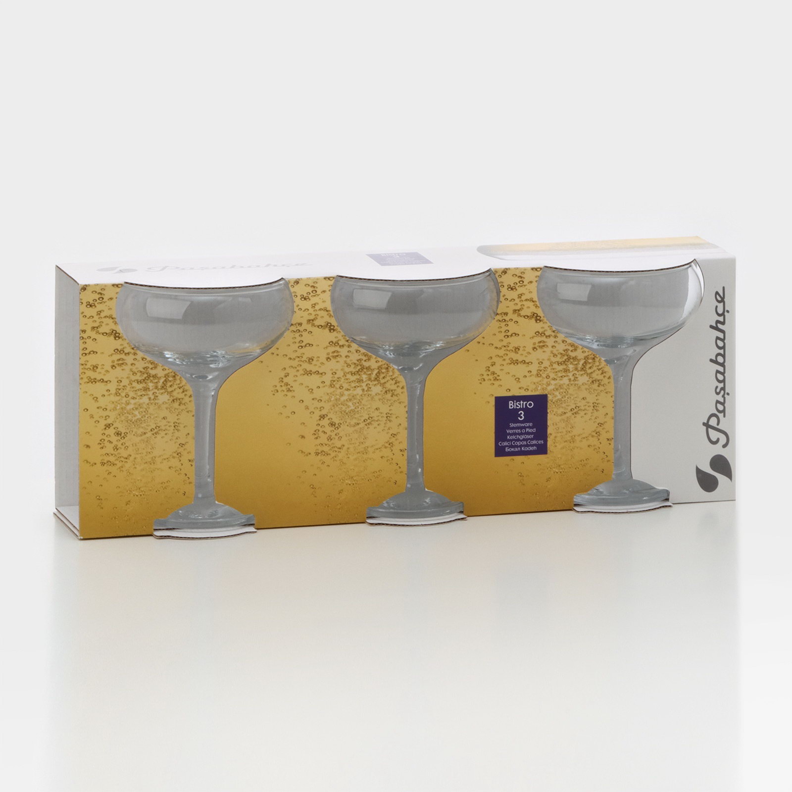 Бокалы для шампанского Bistro, 260 мл, набор 3 шт., стекло, прозрачные, 10x37x14 см., Pasabahce, Россия