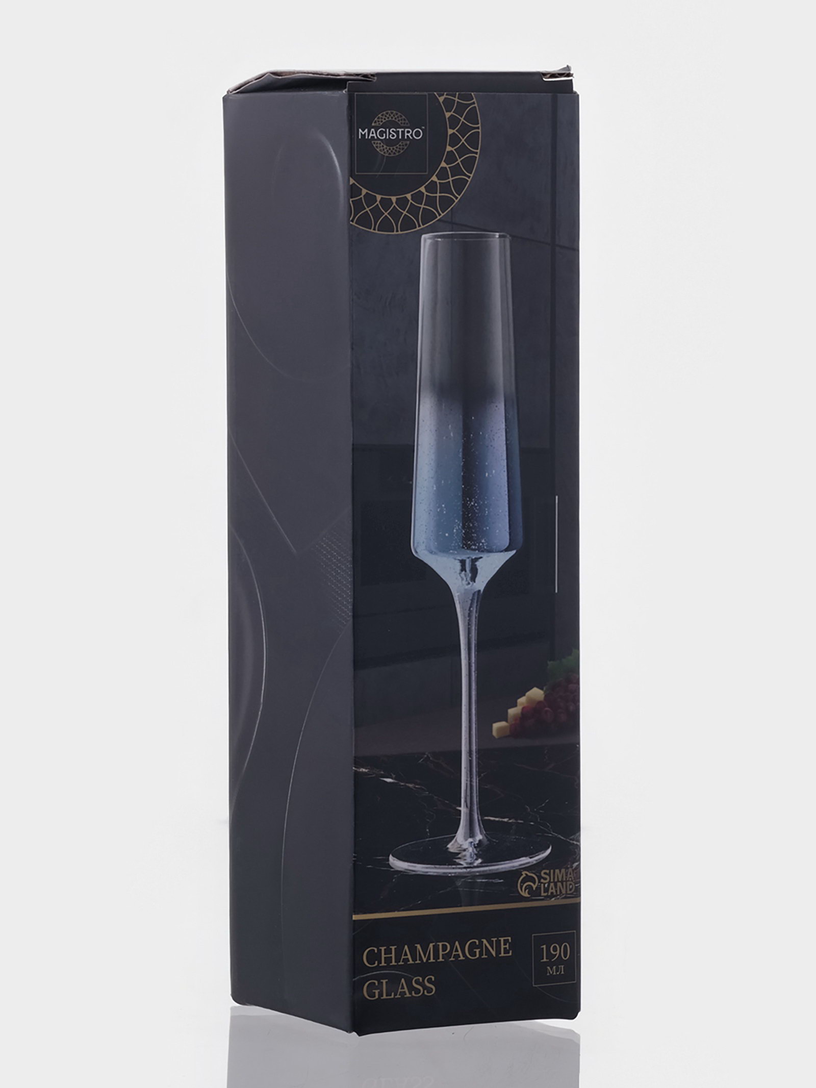 Бокал для шампанского "Мерцание", 190 мл, 7x24.5 см, стекло, синий, 7x7x24.5 см., Magistro, Китай