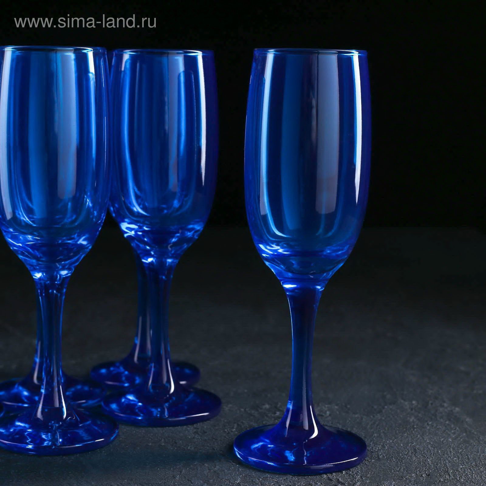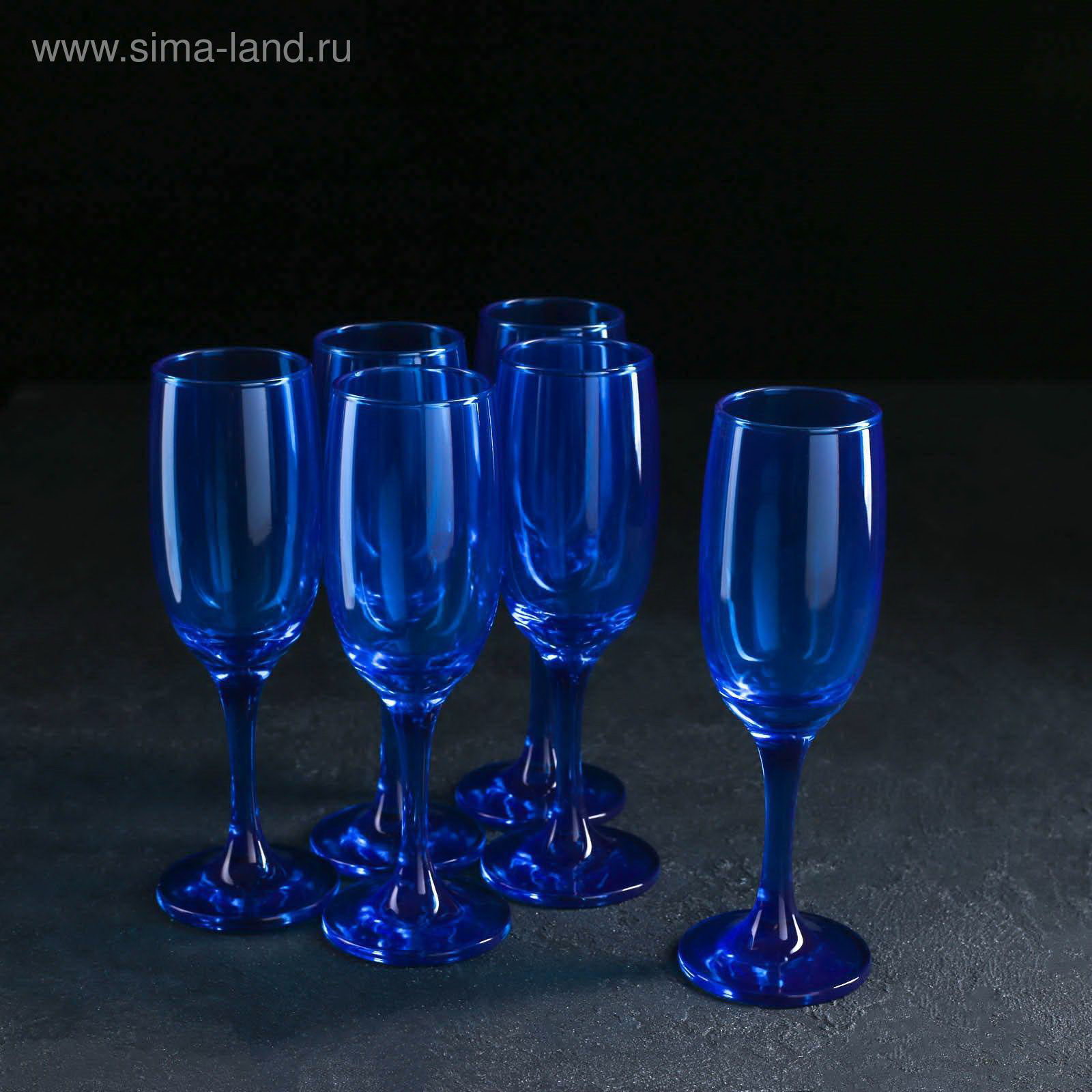Набор бокалов для шампанского "Радуга", 190 мл, 6 шт., цвет кобальт, 190 мл., GiDGLASS, Россия