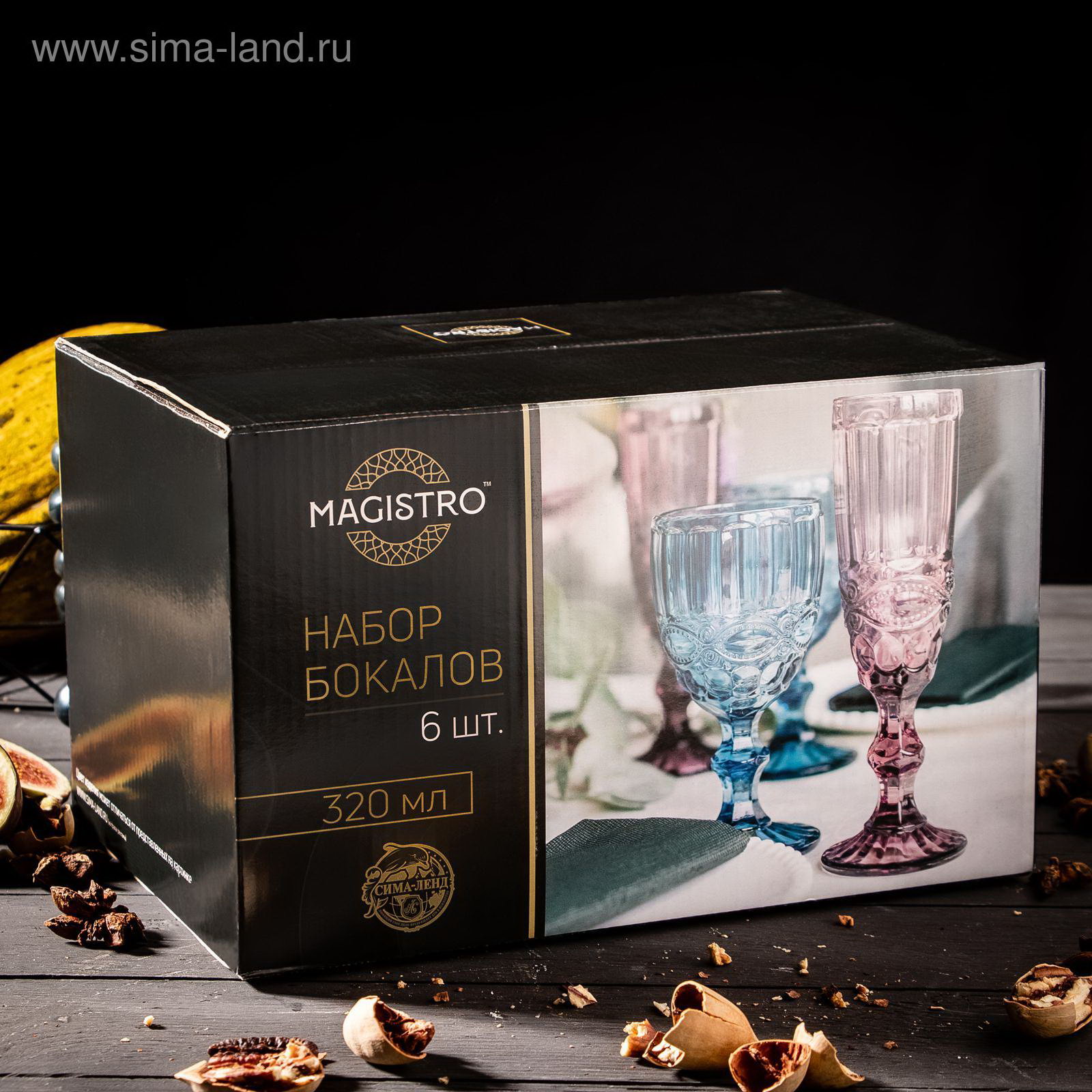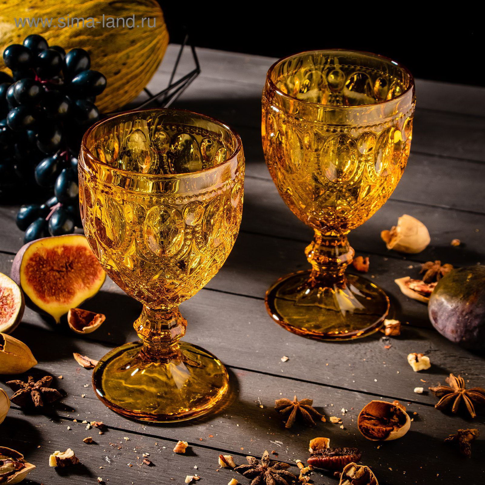 Набор бокалов для вина стеклянный "Варьете", 320 мл, 8.5x16 см, 6 шт, цвет жёлтый, 18.5x26x18 см., Magistro, Китай
