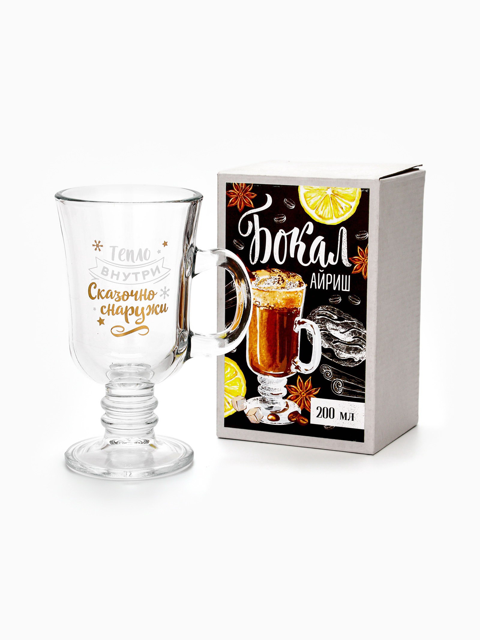 Бокал для глинтвейна с надписью "Тепло внутри", 225 мл, 10.5x7.5x14.5 см., Дорого внимание, Россия