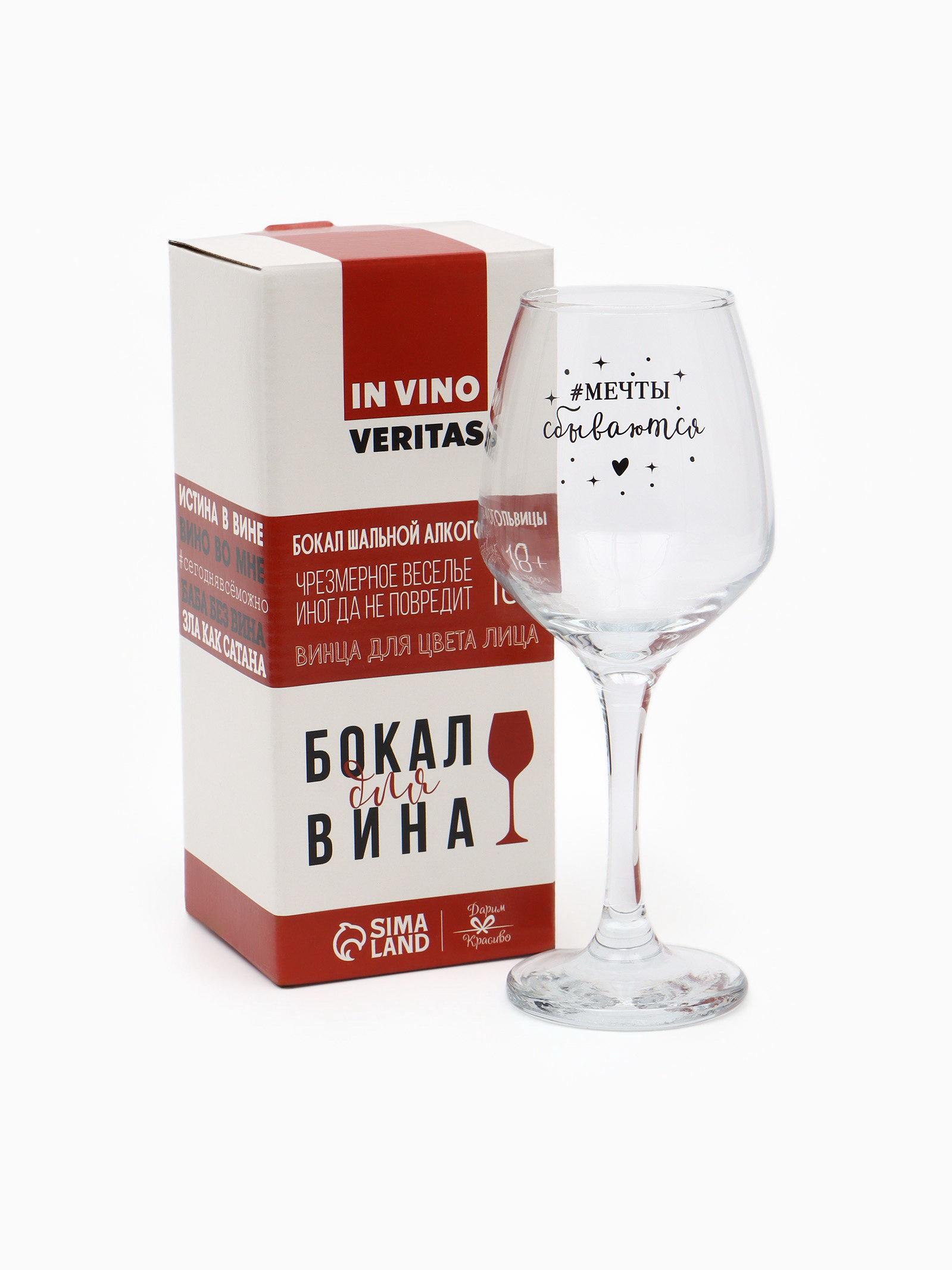 Бокал для вина с надписью "Мечты сбываются", 350 мл, 8.2x8.2x21 см., Дорого внимание, Россия