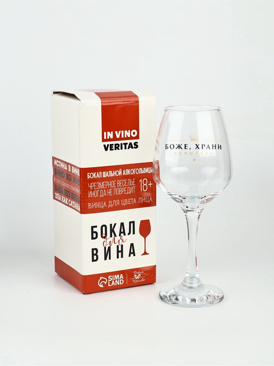 Бокал для вина с надписью "Королева", 350 мл, 8.2x8.2x21 см., Дорого внимание, Россия