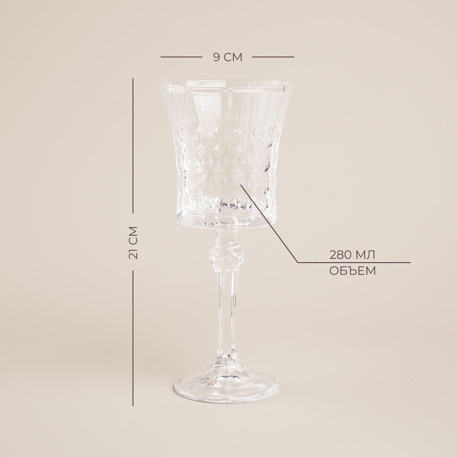 Набор бокалов для вина стеклянный SL Home "Винтаж", 280 мл, 9x21 см, цвет прозрачный, 9x9x21 см., Sima-Land Home, Китай