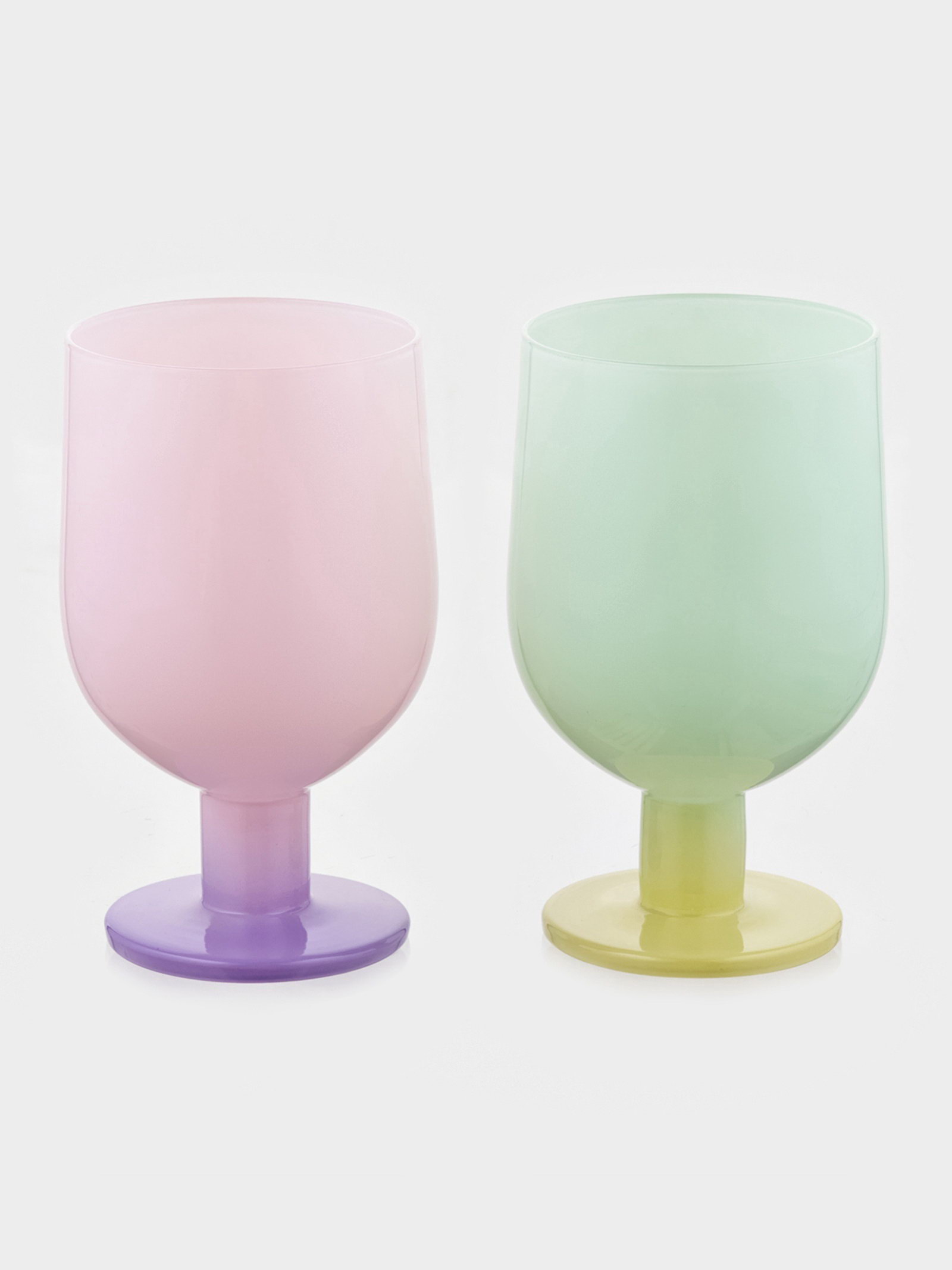 Бокалы для вина Pint, 350 мл, 7.2x12.8 см, набор 2 шт., стекло, розовые, зелёные, 7.2x7.2x12.8 см., Китай