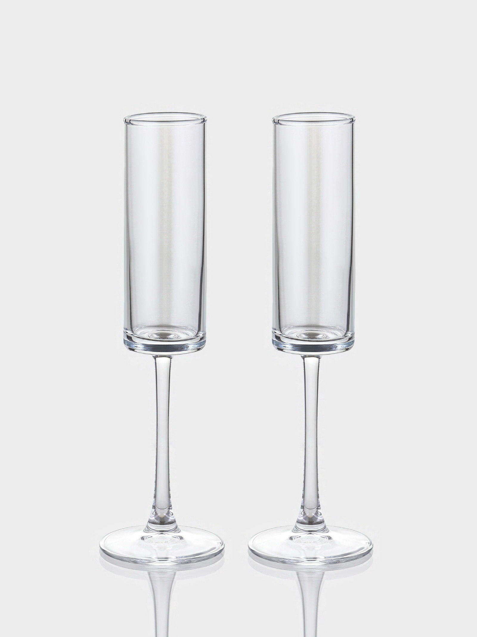 tnved: 7013289000 Цвет: Прозрачный Текстура: Гладкая Особенности: Без особенностей Рисунок: Нет Назначение: Для шампанского В наборе, шт.: 2 Набор: Да Можно мыть в посудомоечной машине: Да Праздник начинается с первого тоста! Набор прозрачных бокалов для шампанского это минималистичная элегантность для тех, кто ценит чистоту формы и лёгкость праздничного момента. Особенности: