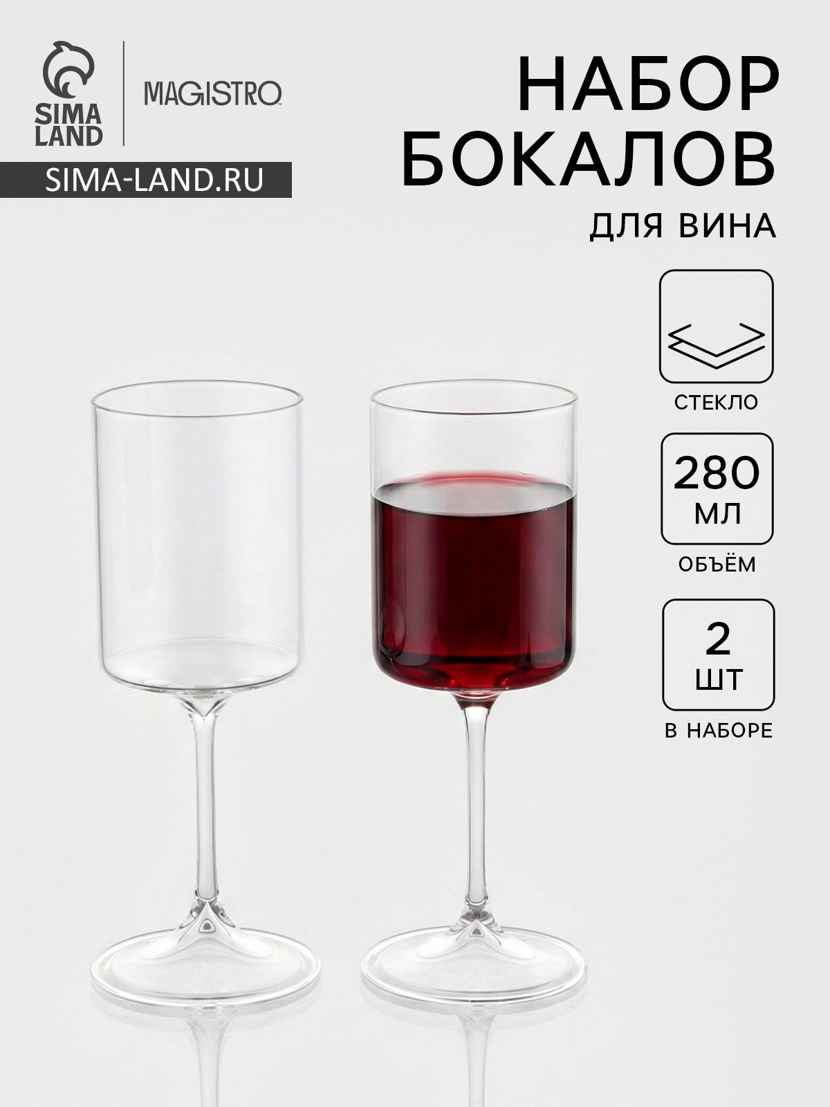Набор бокалов для вина "Индиго", 280 мл, 2 шт., 8.2x21.5 см, стекло, прозрачные, 16.4x8.2x21.5 см., Magistro, Китай