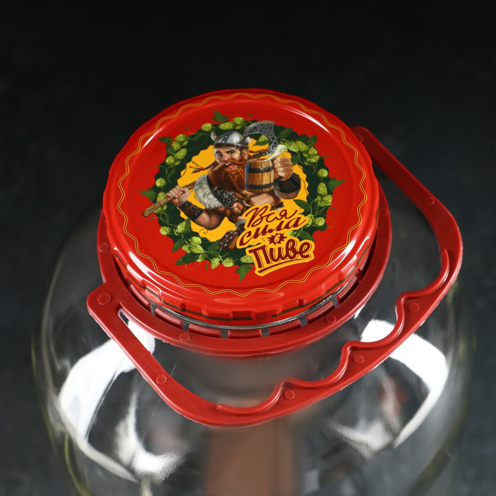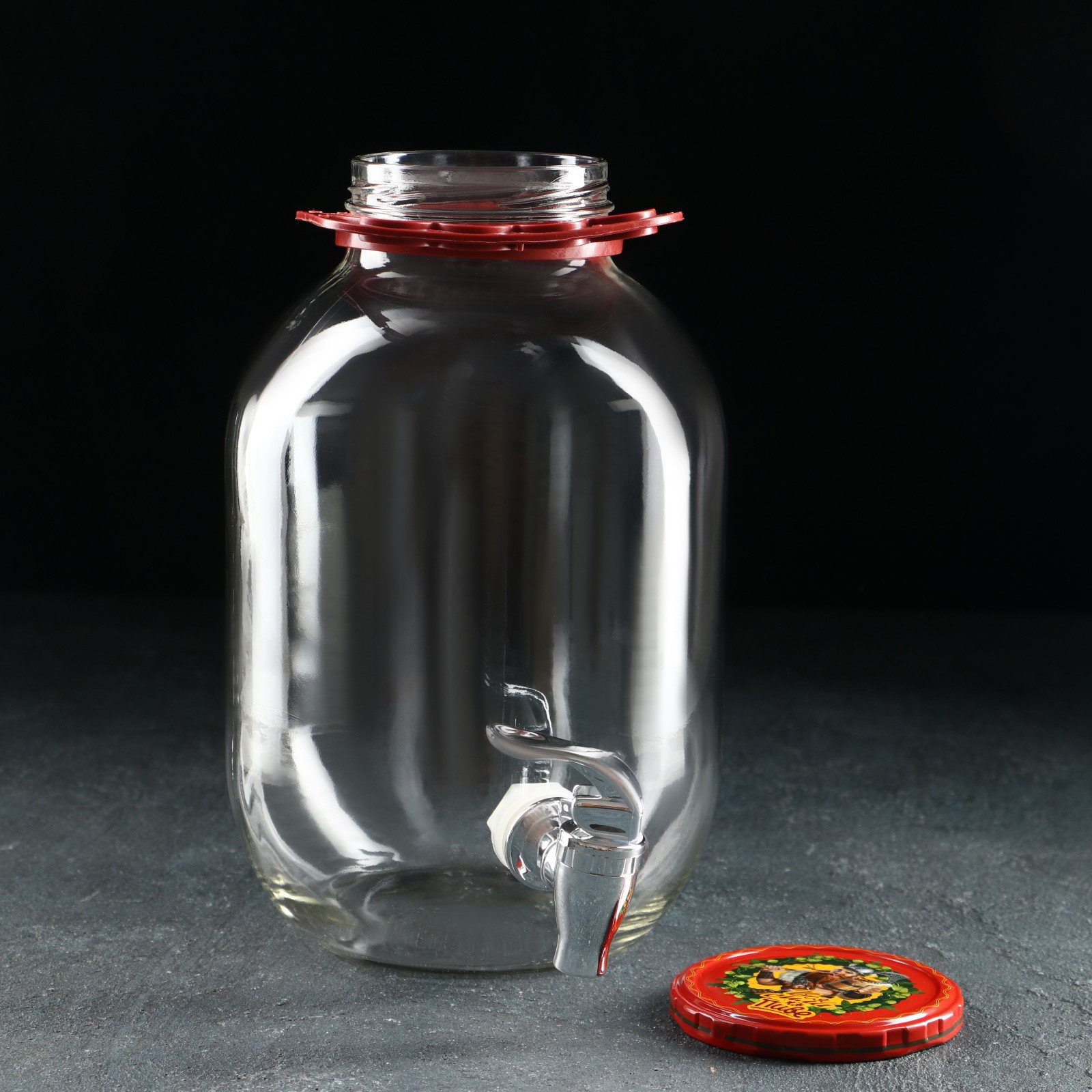 Кувшин стеклянный "Вся сила в пиве", 3 л, с нажимным краном, с ручкой держателем, в коробке, 3000 мл., Россия