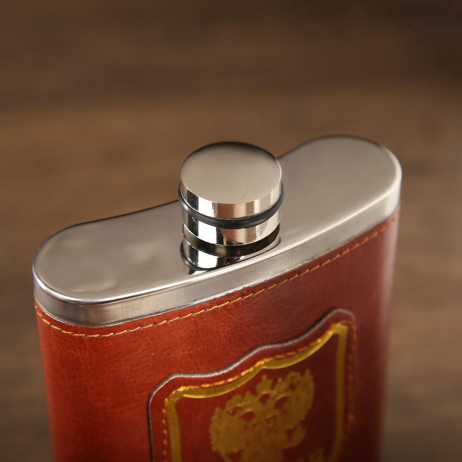 Фляжка "Герб", нержавеющая сталь, 300 мл, 10 oz, 3x9.5x16 см., Сима-ленд, Китай