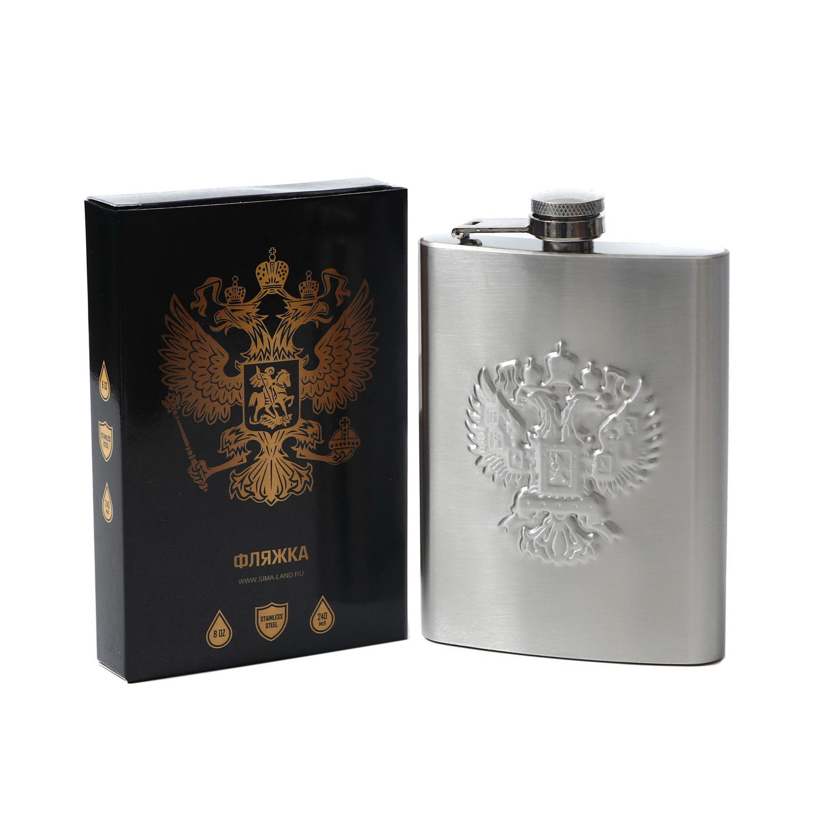 Фляжка "Двуглавый орёл", 240 мл, хром, 2.5x14x9.5 см., Сима-ленд, Китай