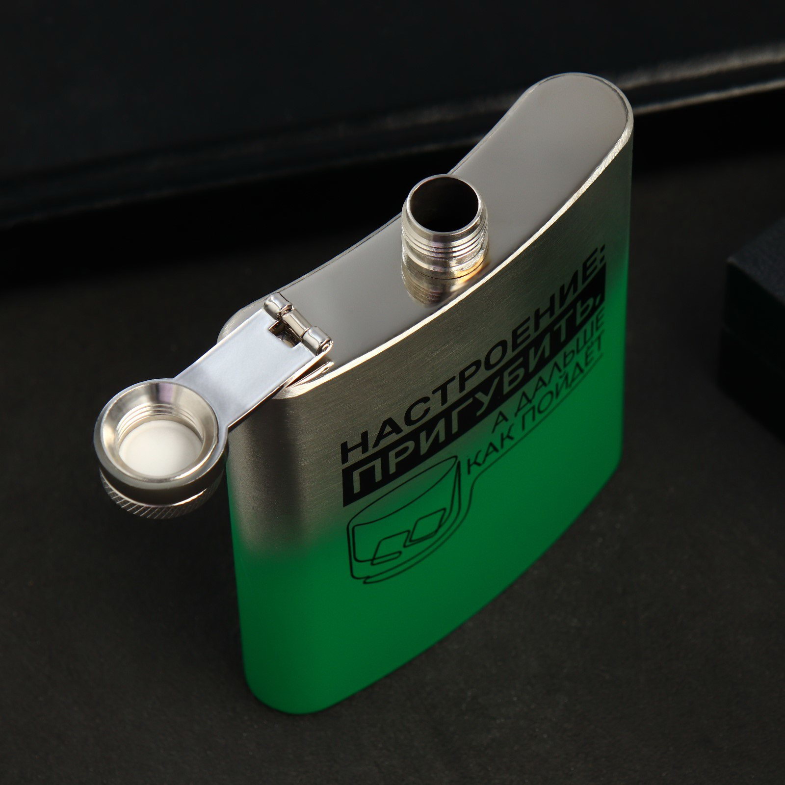 Размер упаковки: 9 x 12.5 x 2.5 см. Цвет: Зелёный Особенности: С гравировкой Особенности: С гравировкой tnved: 7323930000 Для кого: Унисекс Рисунок: Да Фляжка из нержавеющей стали объёмом 210 мл идеальный аксессуар для хранения и переноски напитков. Преимущества: