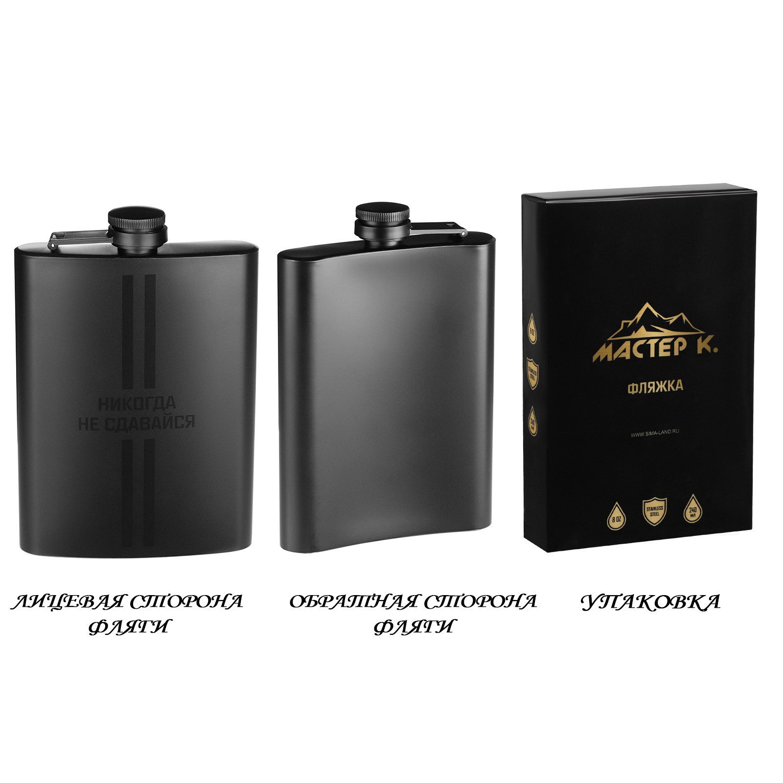 Фляжка "Никогда не сдавайся", нержавеющая сталь, 240 мл, 8 oz, 240 мл., Сима-ленд, Китай