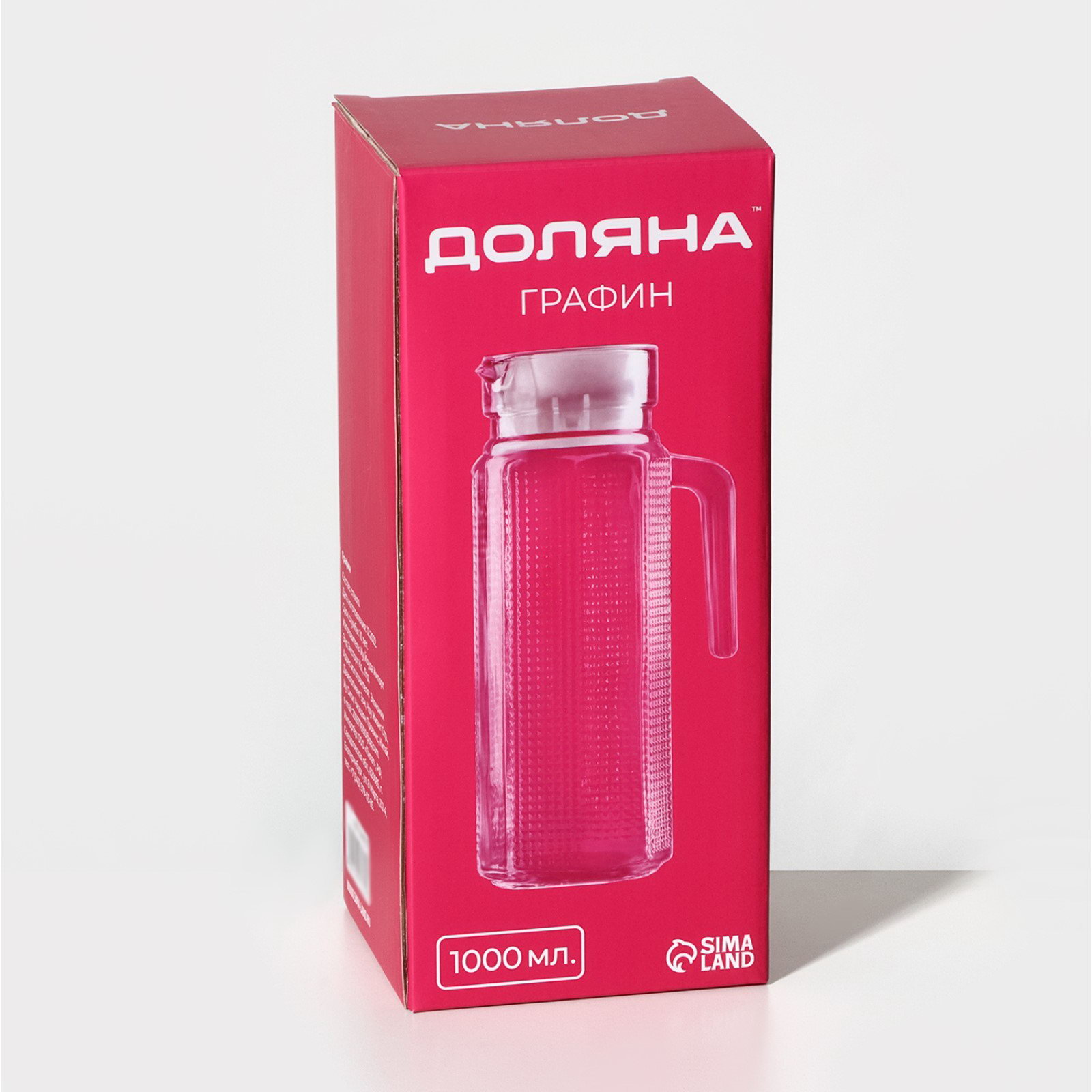 Кувшин "Ребристые грани", 1 л, с крышкой, стекло, прозрачный, 8.3x12x23.5 см., Доляна, Китай