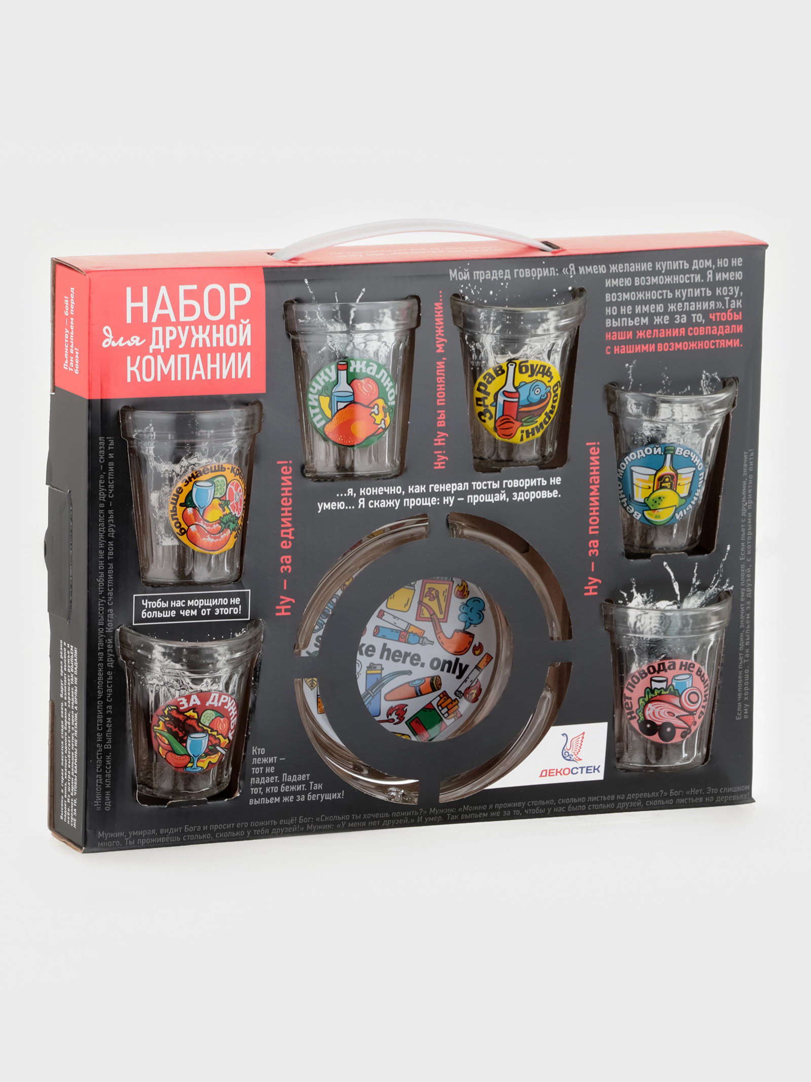 Набор подарочный "Тосты", 7 предметов, 6 стопок 50 мл, пепельница, стекло, рисунок микс, Декостек, Россия
