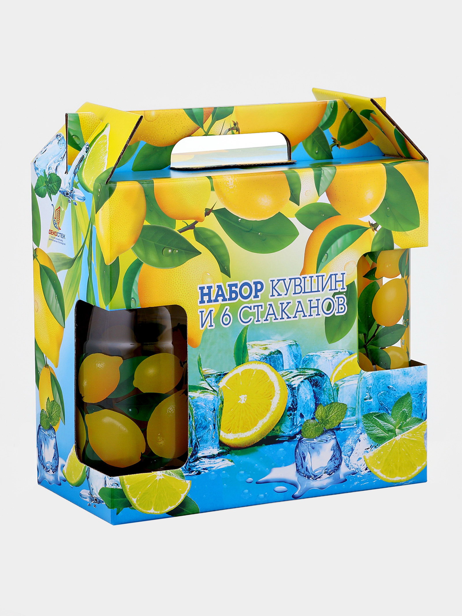 Набор питьевой "Лимон", стеклянный, кувшин+6 стаканов, 1500/230 мл, Декостек, Россия