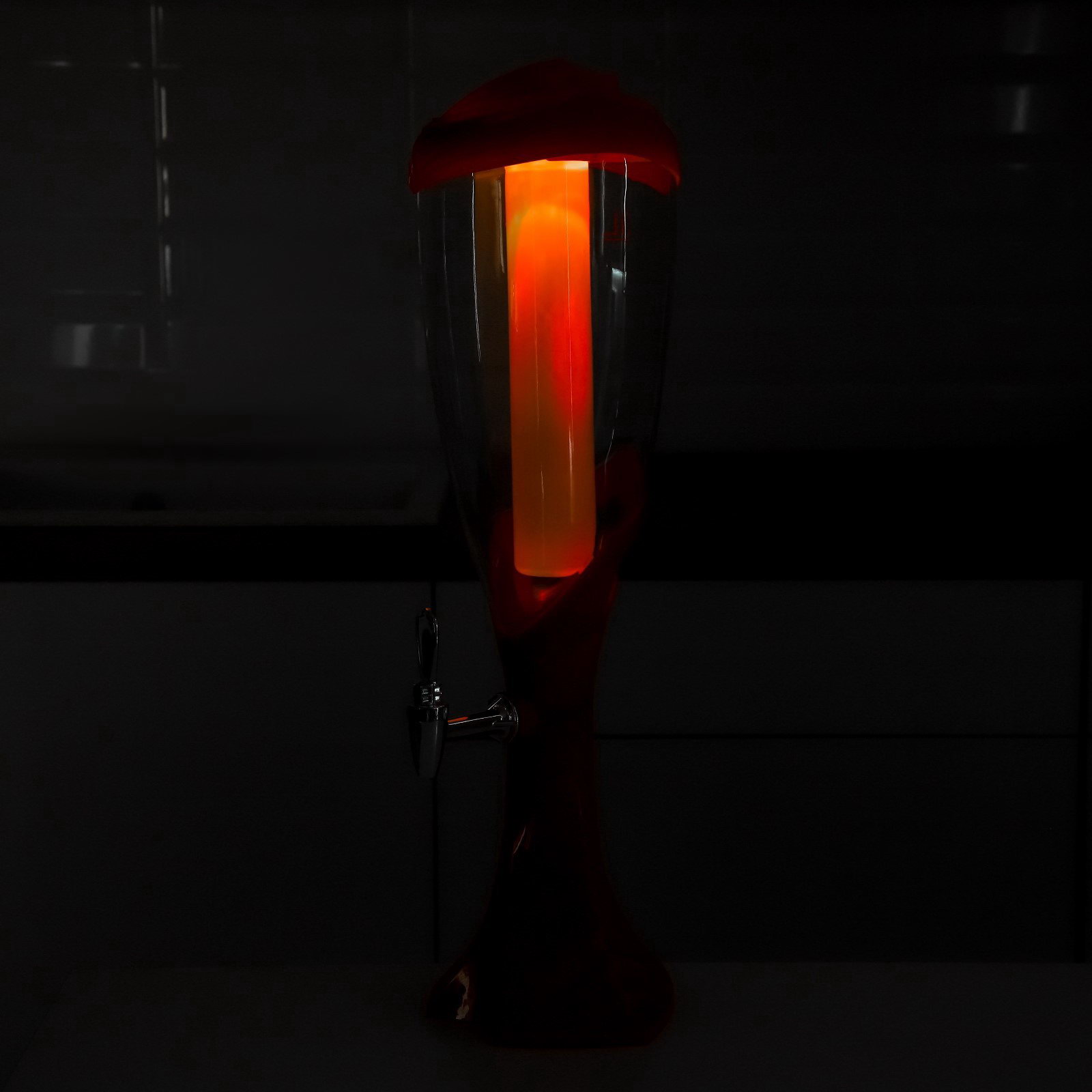 Башня пивная "Вавилон", 3 л, колба для льда, подсветка, батарейка Ag10, пластик, красная, 19.5x23x58 см., Китай