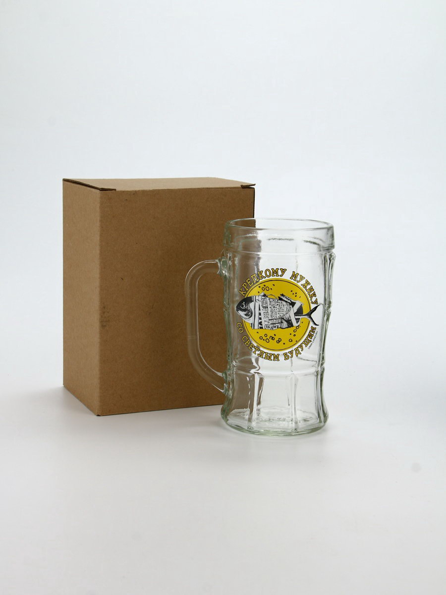 Кружка пивная стеклянная "Крепкому мужику, со светлым будущим", 500 мл, 11x15.5x8 см., Дорого внимание, Россия