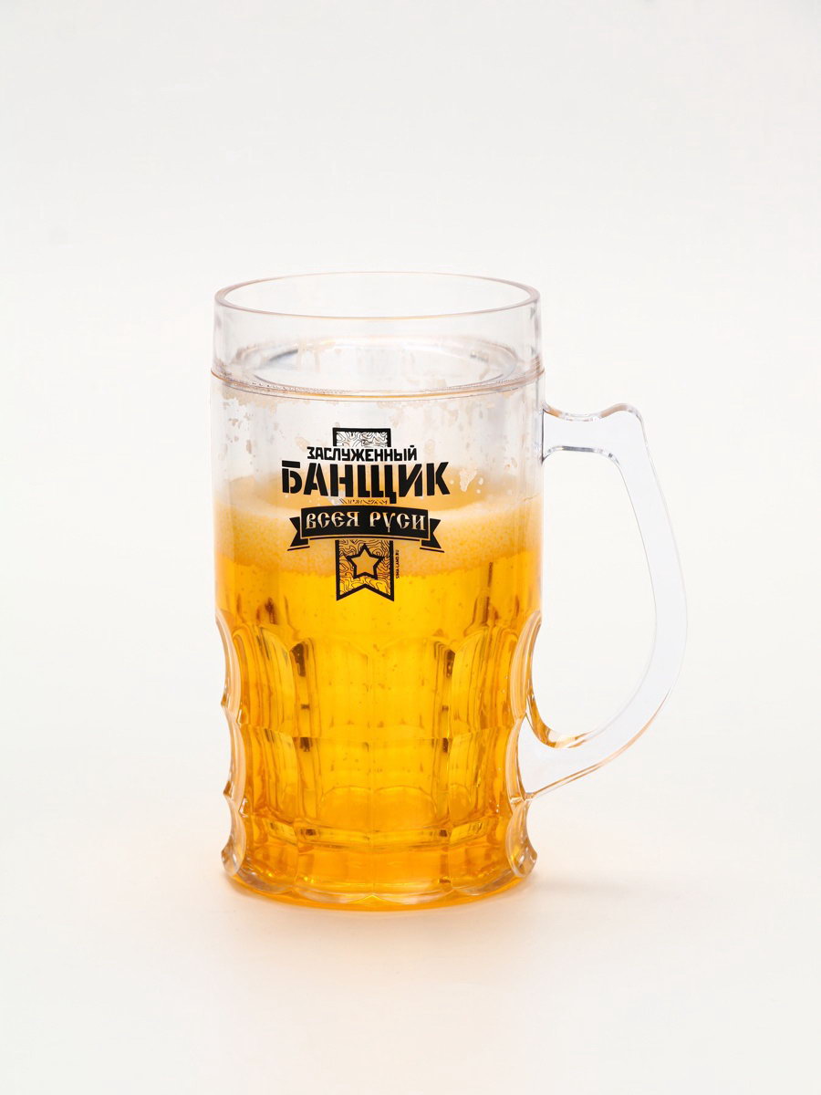 Пивная кружка охлаждающая "Заслуженный банщик", 420 мл, двойные стенки, 11x15x8.5 см., Дорого внимание, Китай