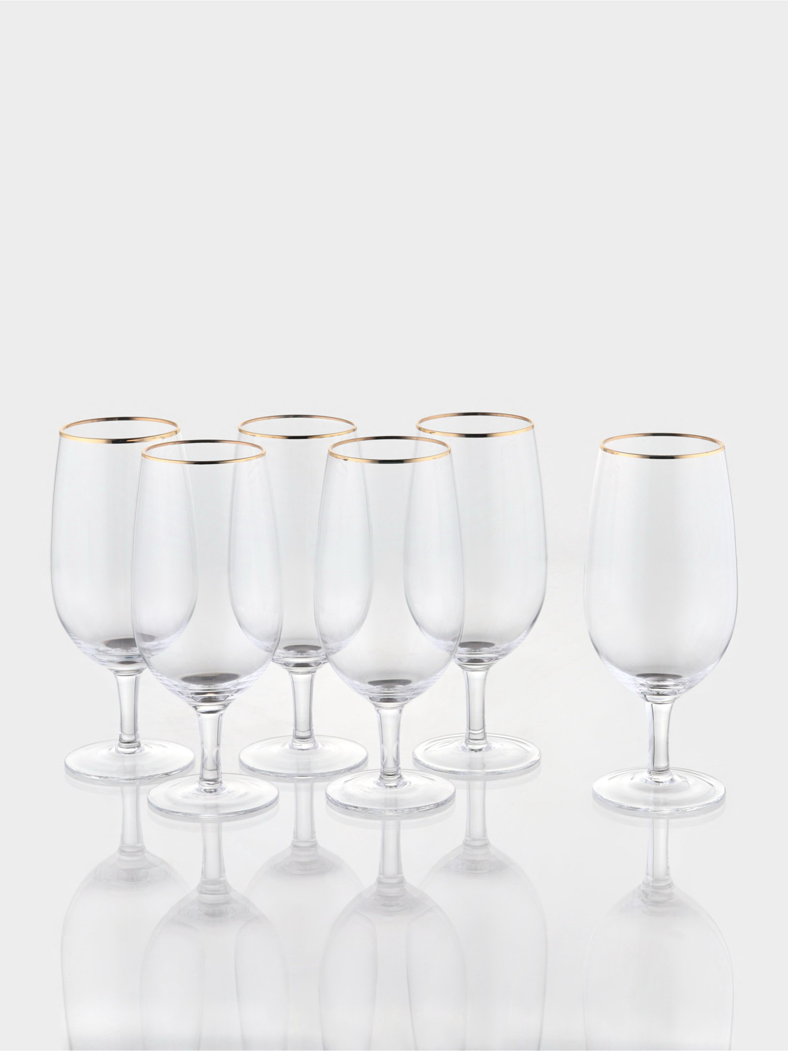 Набор бокалов для пива "Руно", 550 мл, 6 шт., 20.1x6.3 см, на ножке, стекло, с золотой отводкой, прозрачный, 550 мл., Magistro, Китай