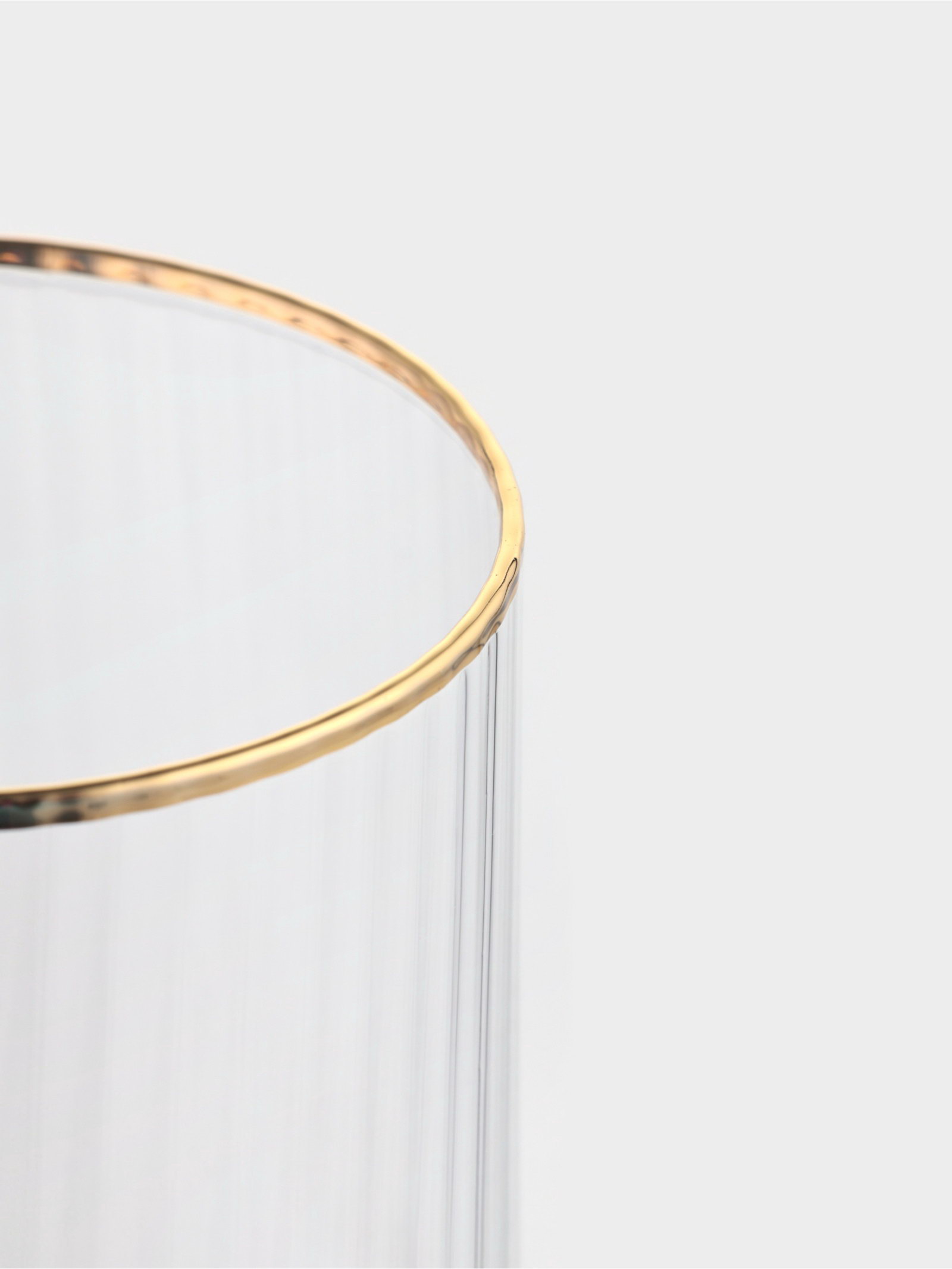 Размер упаковки: 7 x 17.5 x 7 см. tnved: 7013289000 Набор: Да В наборе, шт.: 6 Текстура: С рельефом Цвет: Прозрачный Тематика: Полоски, полоса Рисунок: Да Особенности: С золотой отводкой Можно мыть в посудомоечной машине: Нет | ||
