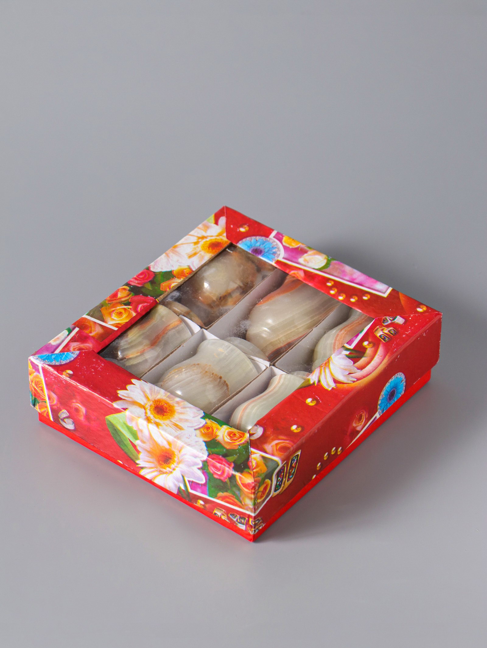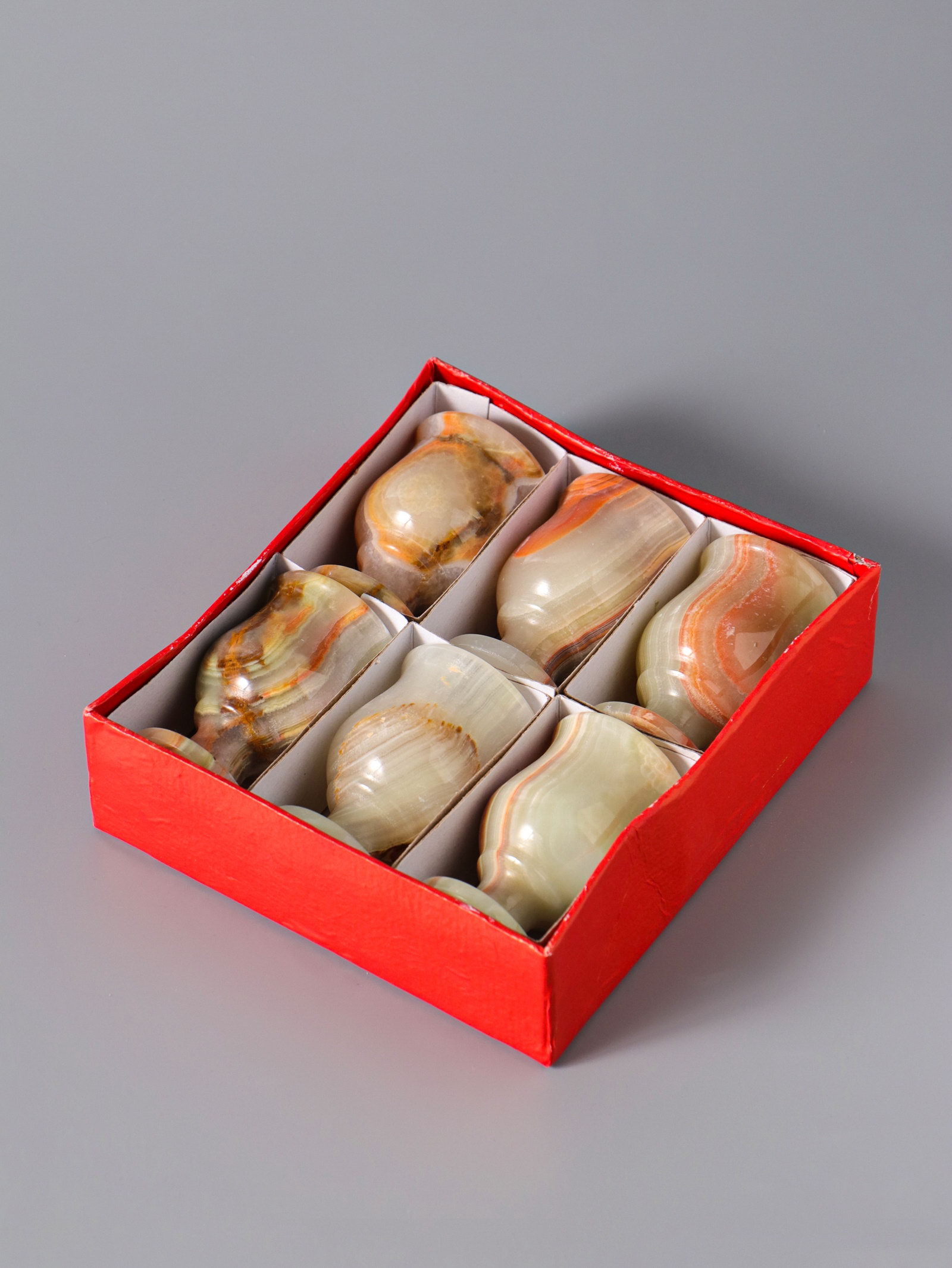 Размер упаковки: 13 x 4 x 13 см. tnved: 6802290000 Температурное ограничение: Нет Цвет: Разноцветный В наборе, шт.: 6 Рисунок: Нет Набор: Да Объём бокала/рюмки, мл: 30 Назначение: Для водки/ликера Шесть рюмок из натурального оникса это готовый подарок для ценителя крепких напитков. Каждая рюмка в наборе обладает уникальным природным узором и приятной тяжестью в руке. Они создают особое настроение за столом, превращая обычную дегустацию в небольшой ритуал. Особенности набора
