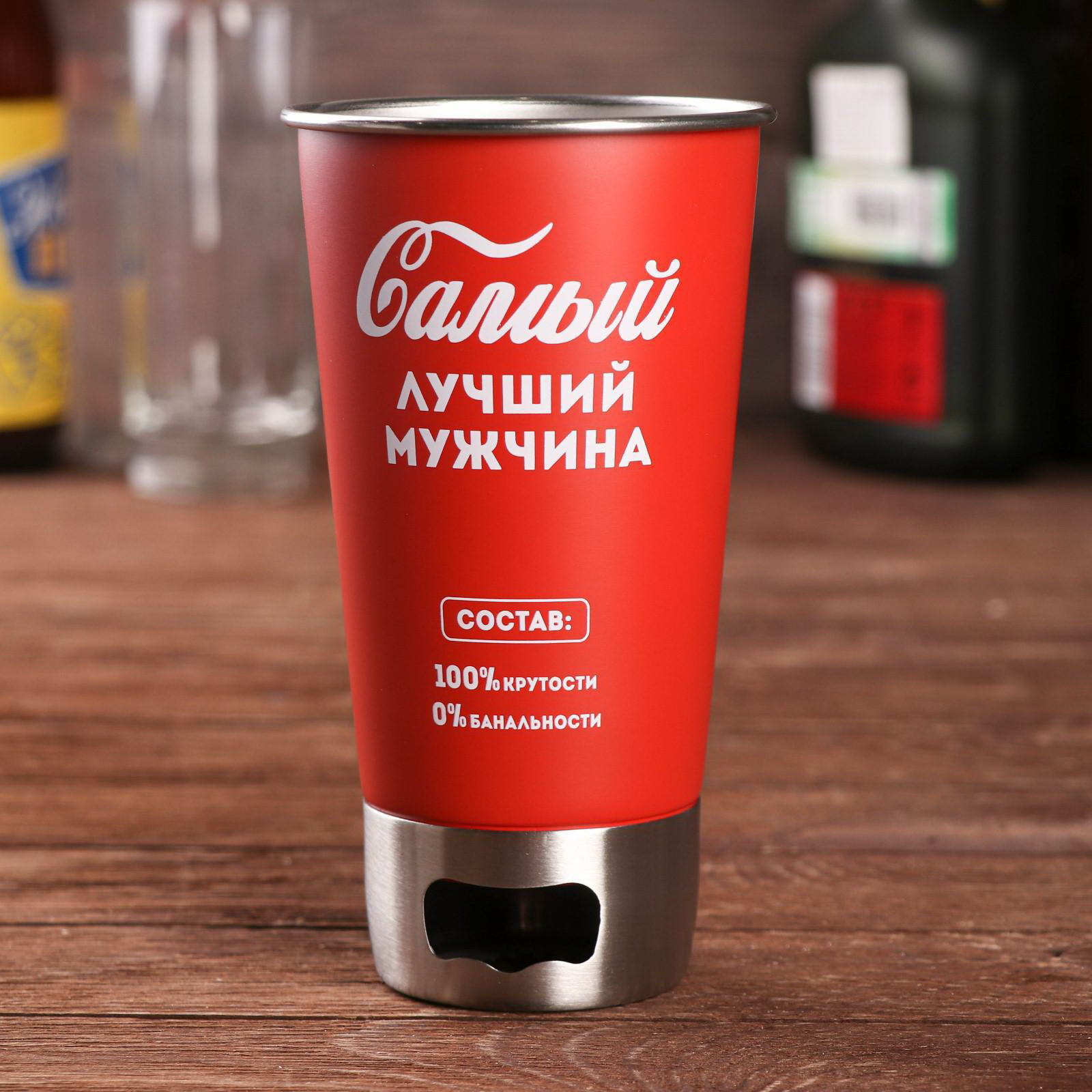 Стакан с открывашкой "Самый лучший мужчина", 500 мл, 8.8x16x6 см., SVOBODA VOLI, Китай