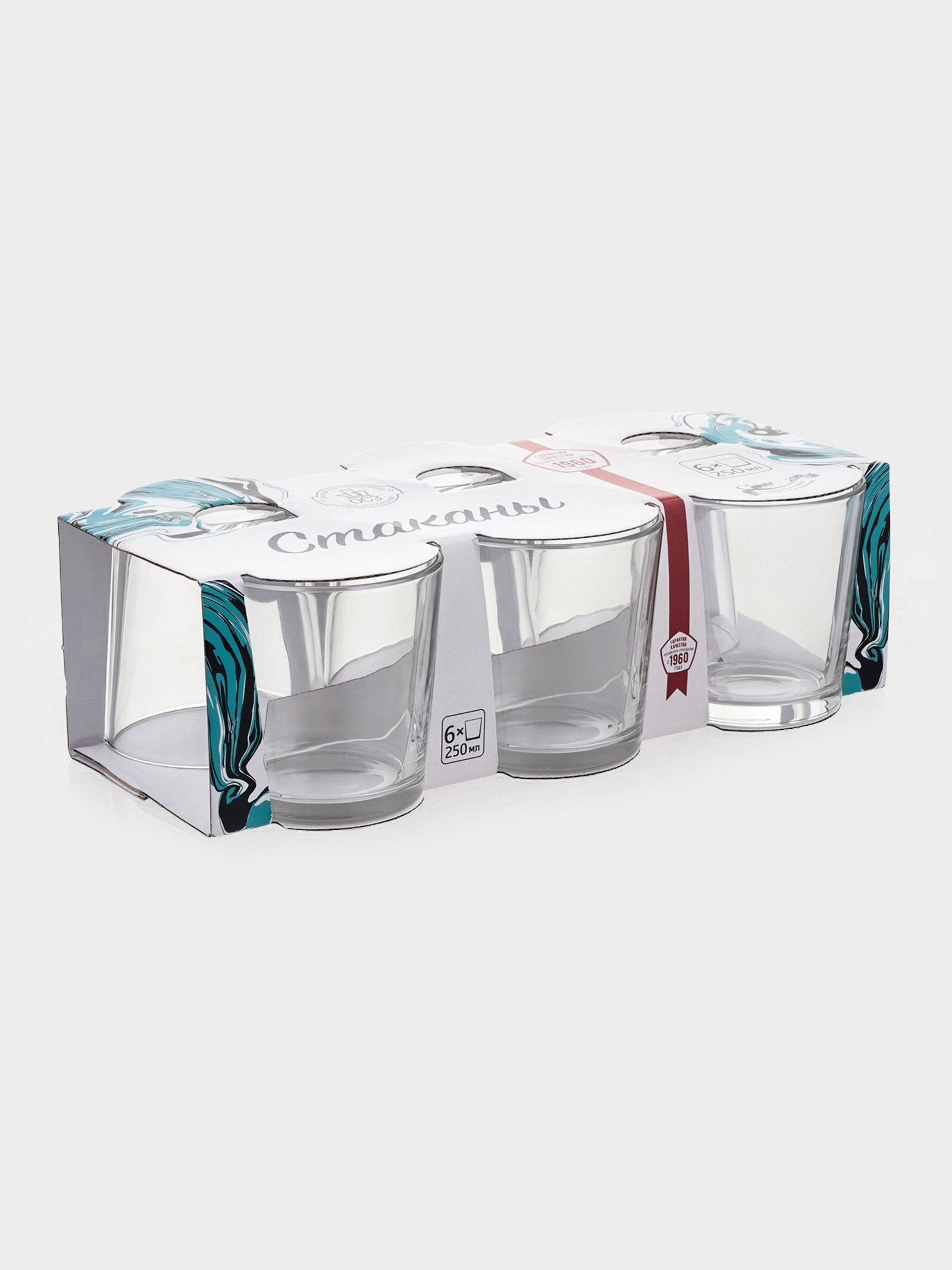 Набор стаканов "Ода", 250 мл, 6 шт., стекло, прозрачный, 28x14.5x8.5 см., ОСЗ, Россия