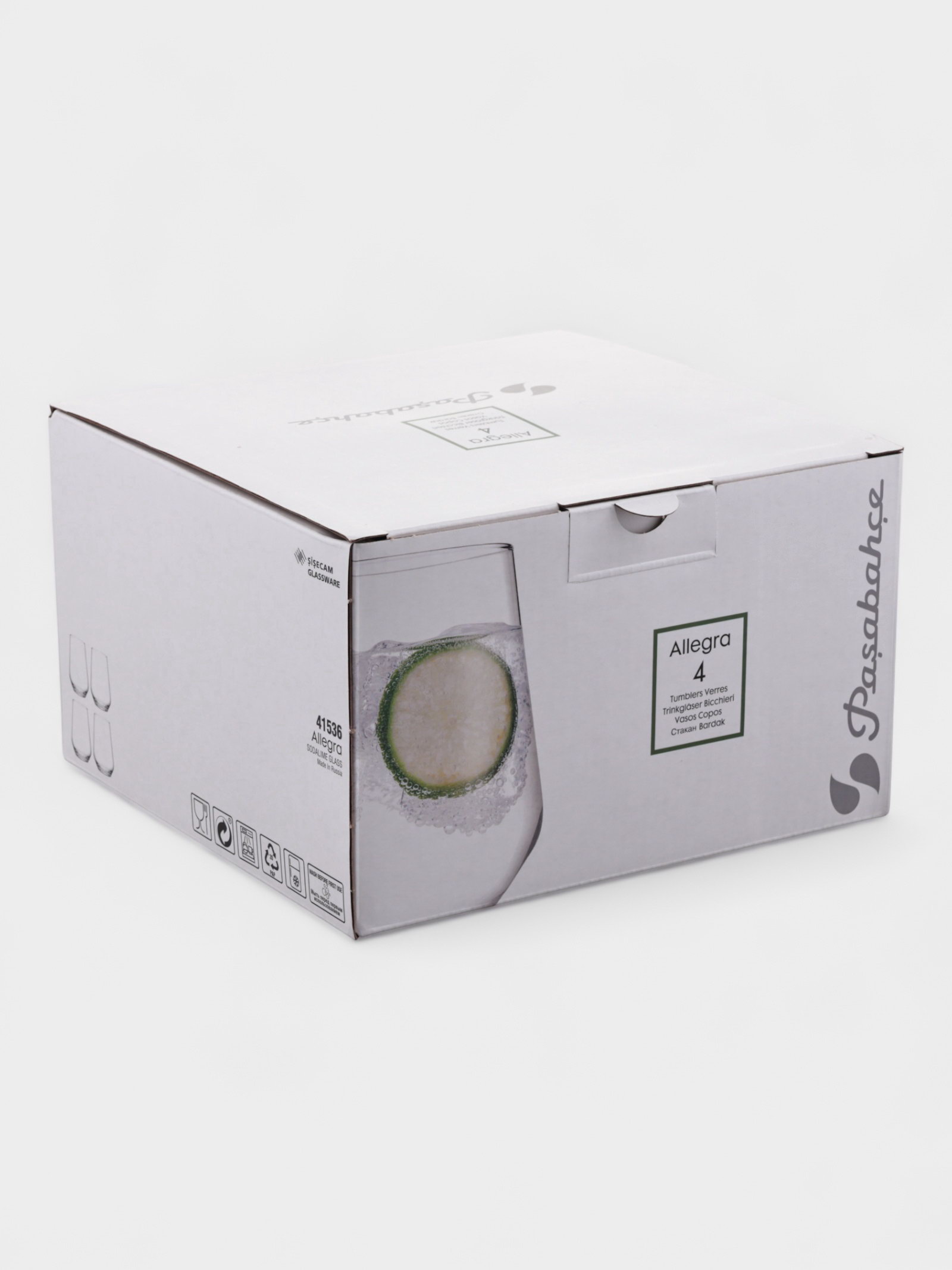 Стаканы "Аллегра", 425 мл, набор 4 шт., стекло, прозрачные, 425 мл., Pasabahce, Россия