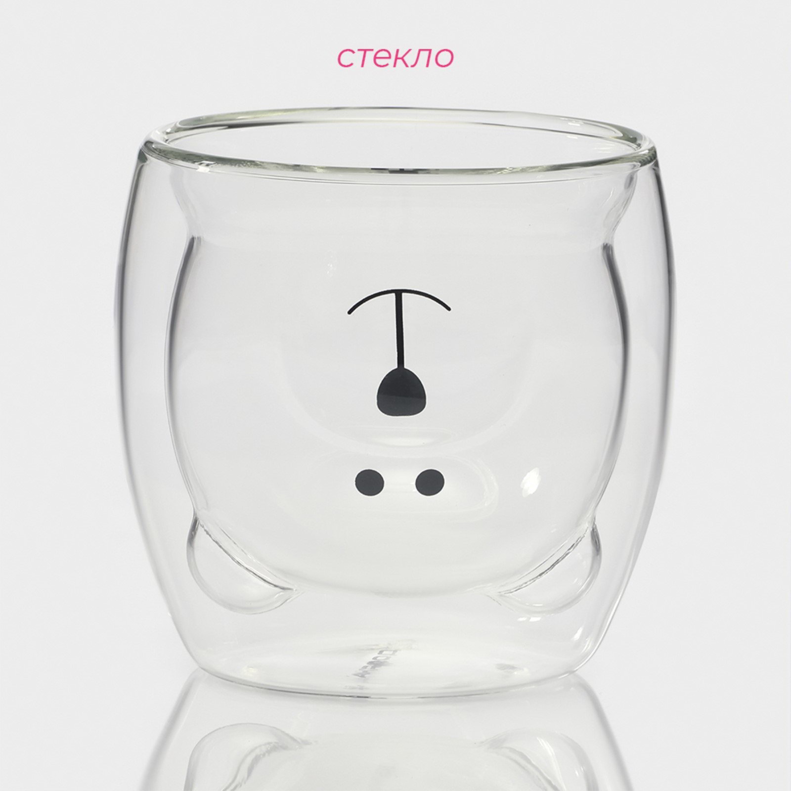 Стакан "Медведь", 200 мл, 9x9 см, с двойными стенками, стекло, прозрачный, 9x9x9 см., Доляна, Китай