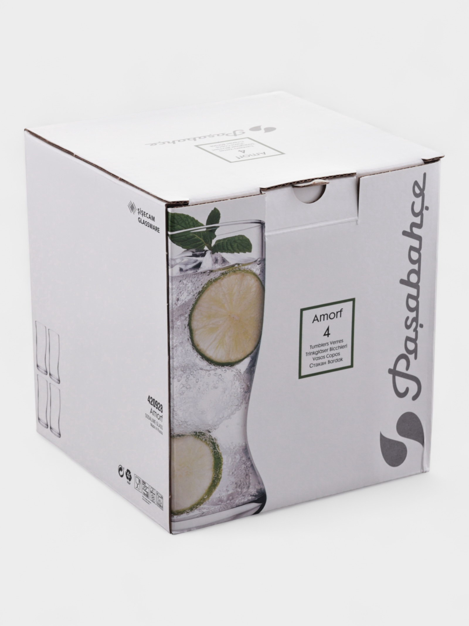 Стаканы Amorf, 400 мл, 4 шт., стекло, прозрачные, 400 мл., Pasabahce, Россия