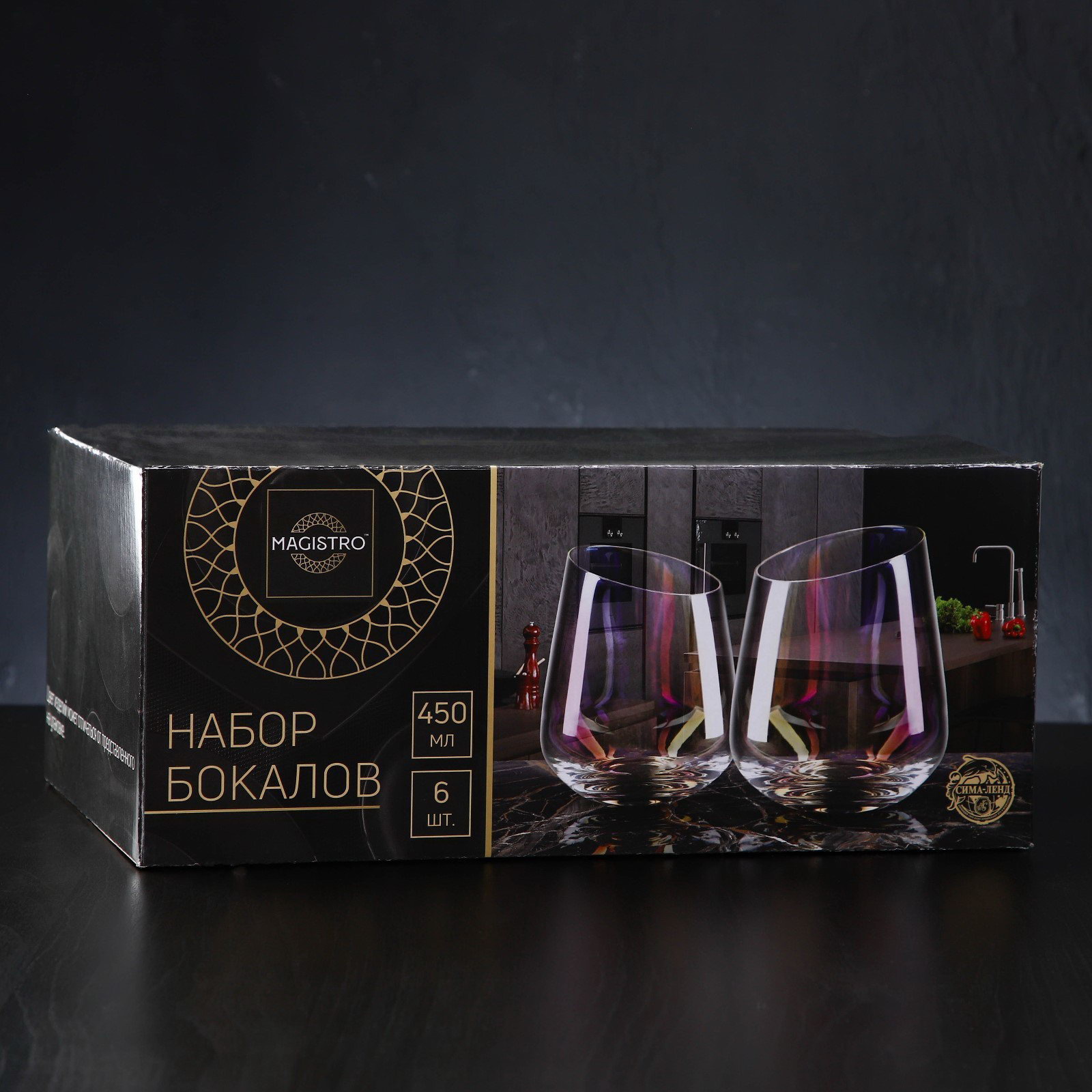 Набор стаканов стеклянных "Иллюзия", 450 мл, 9.5x11.5 см, 6 шт., цвет золотой, 450 мл., Magistro, Китай