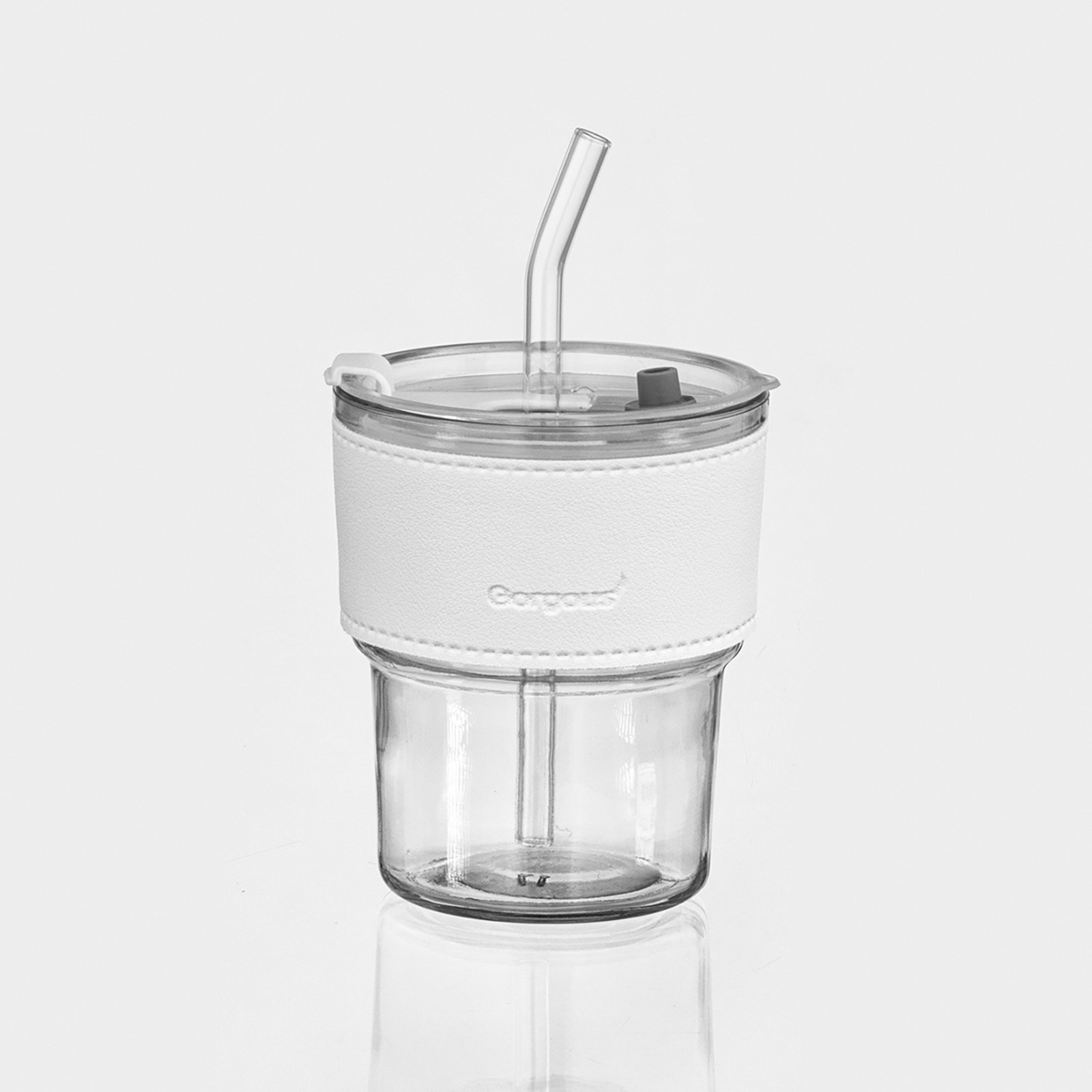 Стакан стеклянный с крышкой и трубочкой "Вида", 350 мл, цвет МИКС, 9x9x11 см., Китай