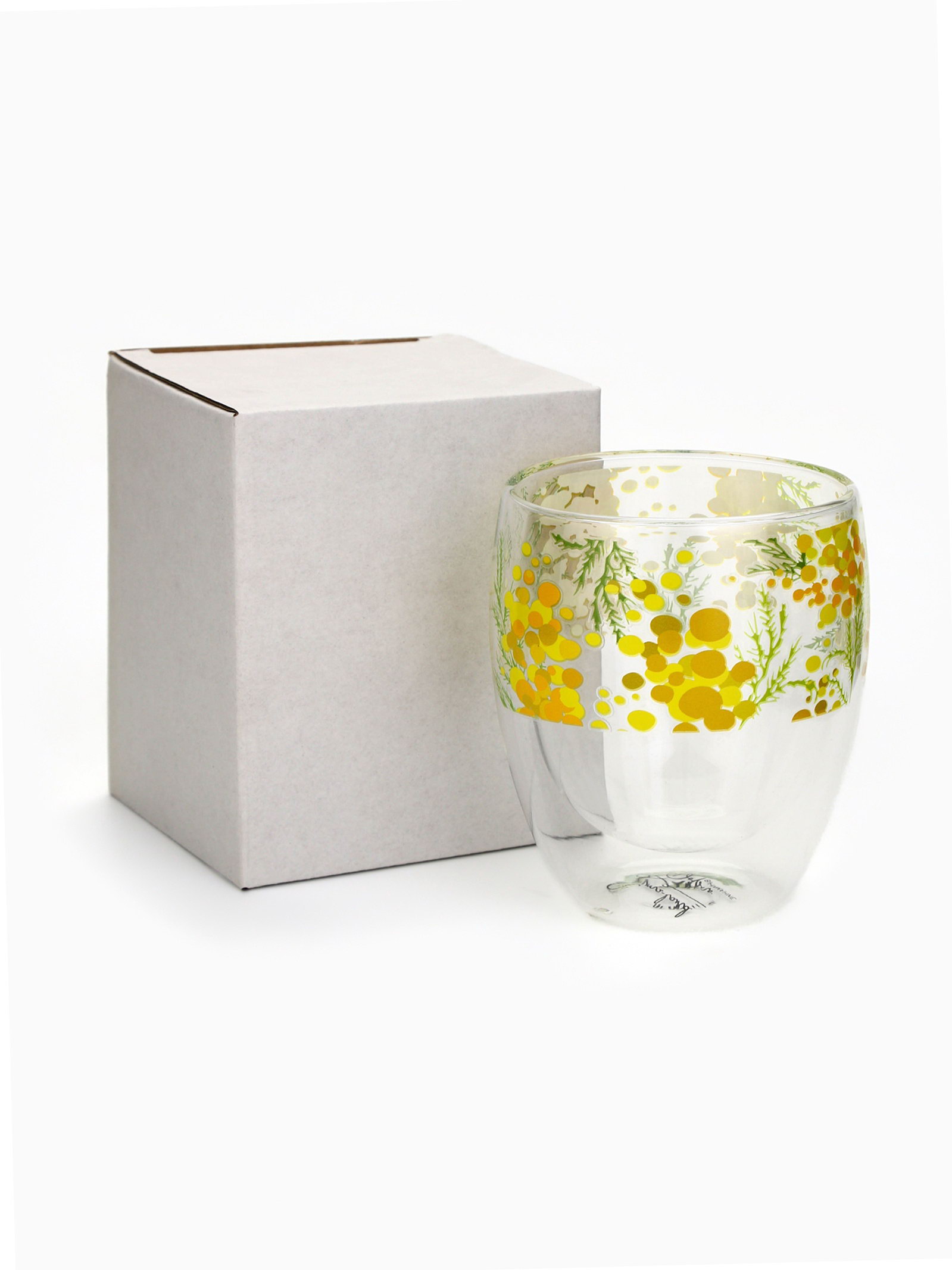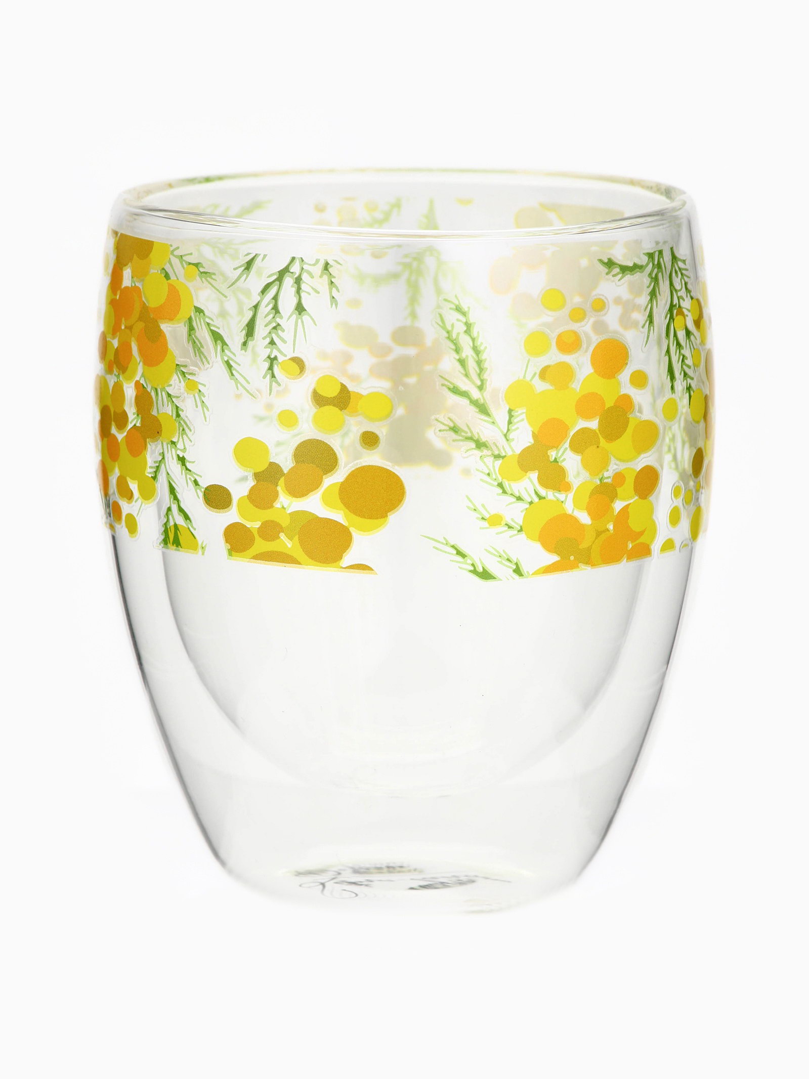Стакан с двойными стенками "Нежная мимоза", 300 мл, 8.5x10x8.5 см., Дорого внимание, Китай