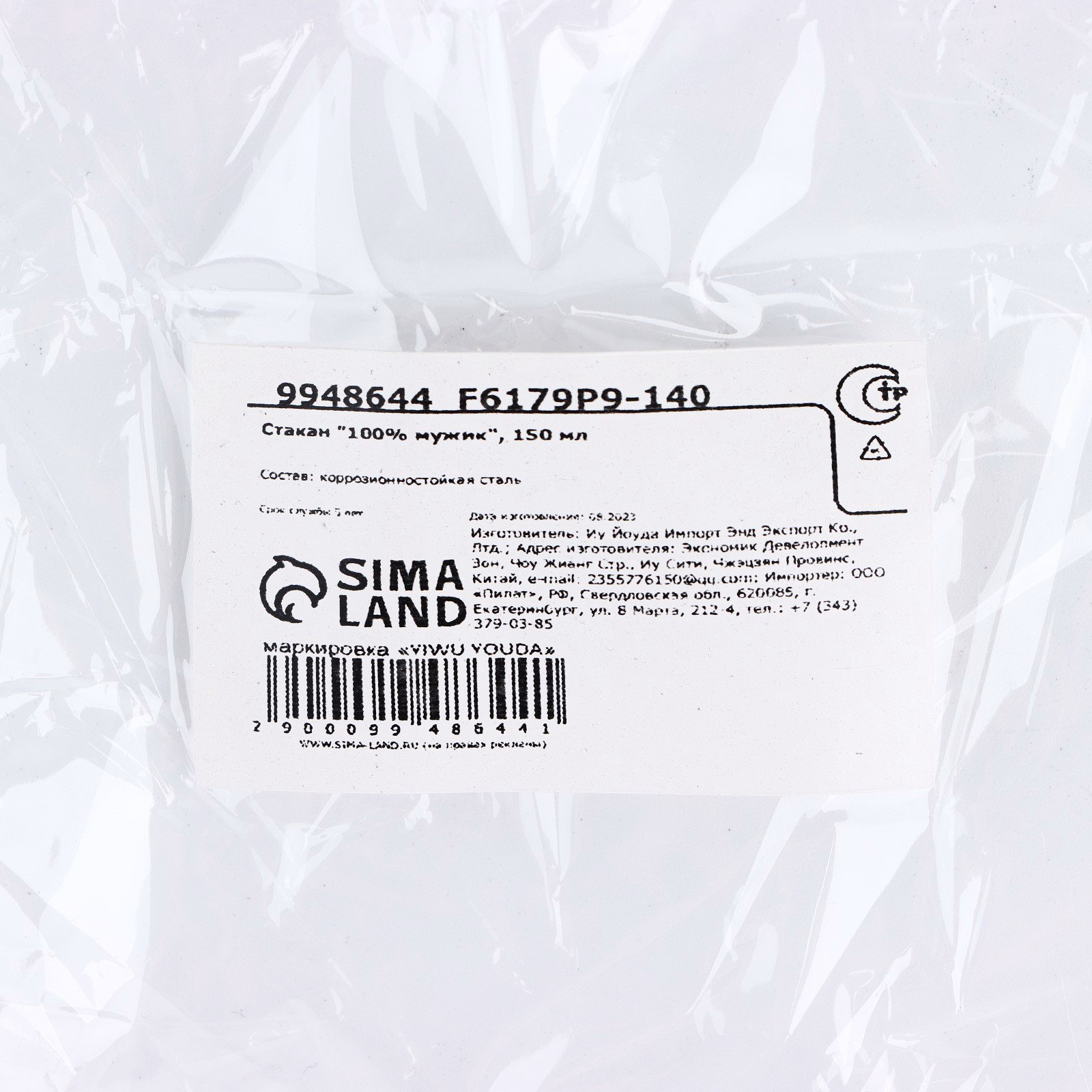 Стакан туристический "100% мужик", 150 мл, 4.5x8.2x4.5 см., Сима-ленд, Китай