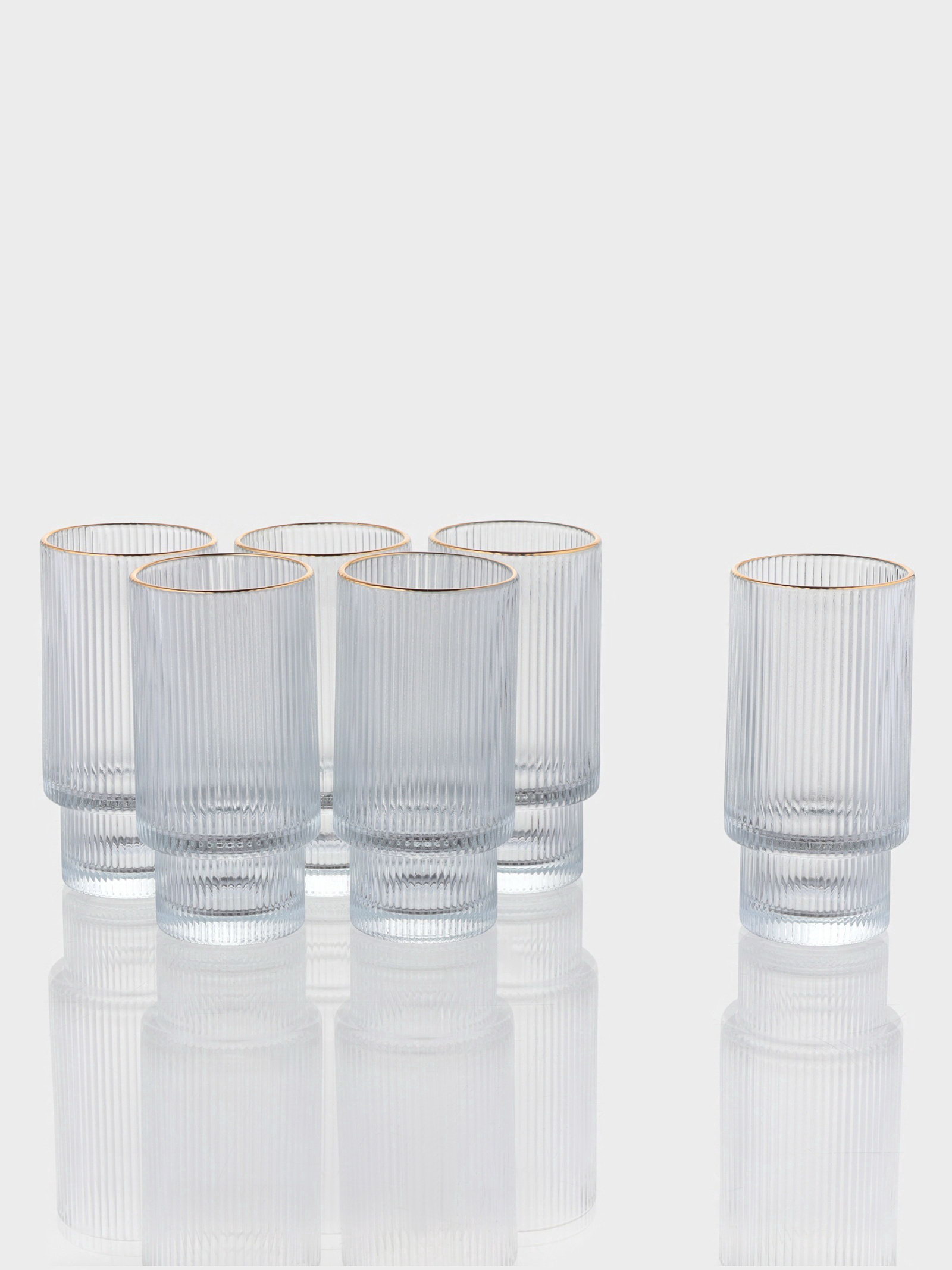 Размер упаковки: 14.5 x 14.5 x 21.5 см. tnved: 7013379000 Особенности: С золотой отводкой В наборе, шт.: 6 Цвет: Прозрачный Текстура: С рельефом Набор: Да Рисунок: Нет Можно мыть в посудомоечной машине: Нет Можно использовать в СВЧ-печи: Нет Элегантная сервировка стола! Набор стаканов – комплект из шести стеклянных ёмкостей для напитков. Он подходит для повседневного использования на кухне или во время трапез. Особенности: