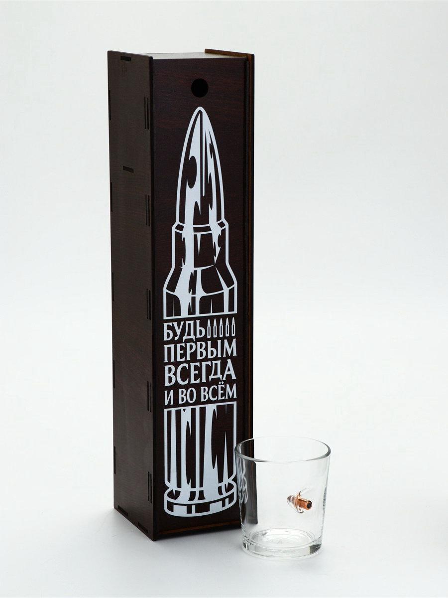 Стакан для виски с пулей "Непробиваемый", в подарочной коробке с местом под бутылку, 250 мл, 250 мл., Сима-ленд, Россия
