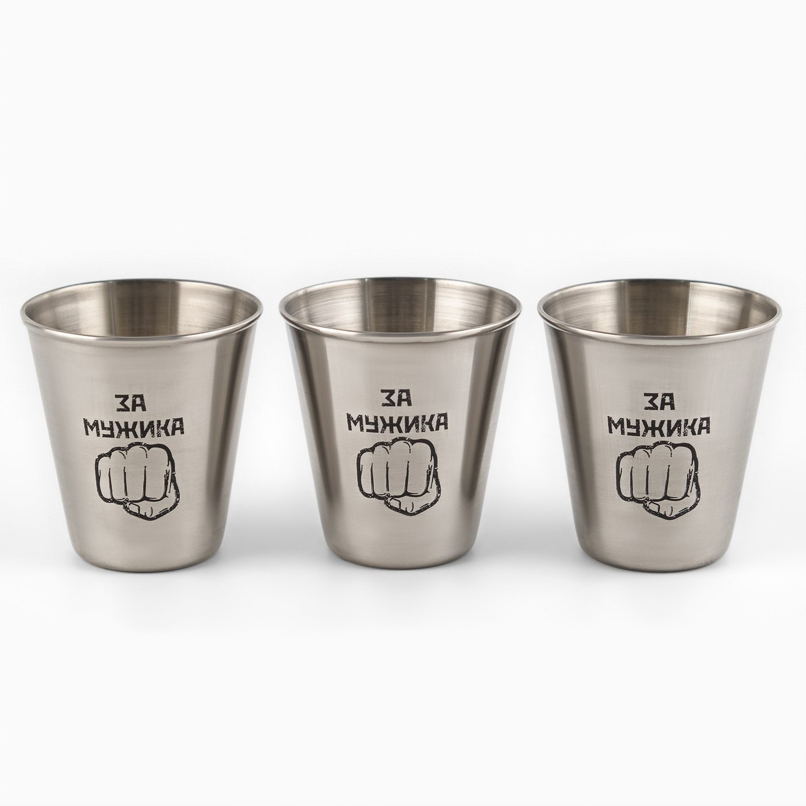 Стопки "За мужика", нержавеющая сталь, набор 3 шт. x 70 мл, 70 мл., Сима-ленд, Китай