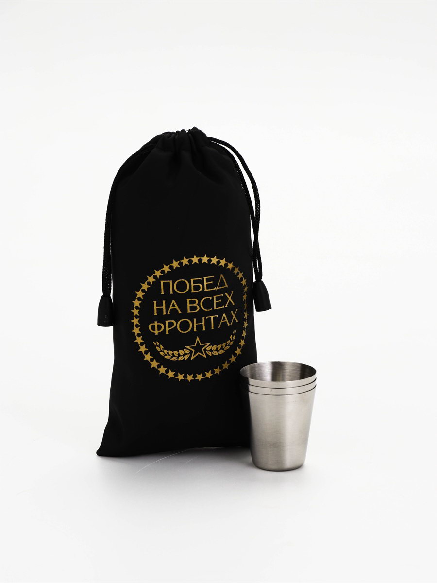 Стопки в чехле "Побед на всех фронтах": нержавеющая сталь, набор 3 шт.x30 мл, 4x16x7 см., Сима-ленд, Китай