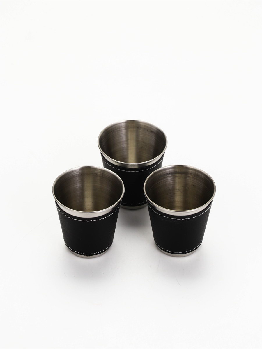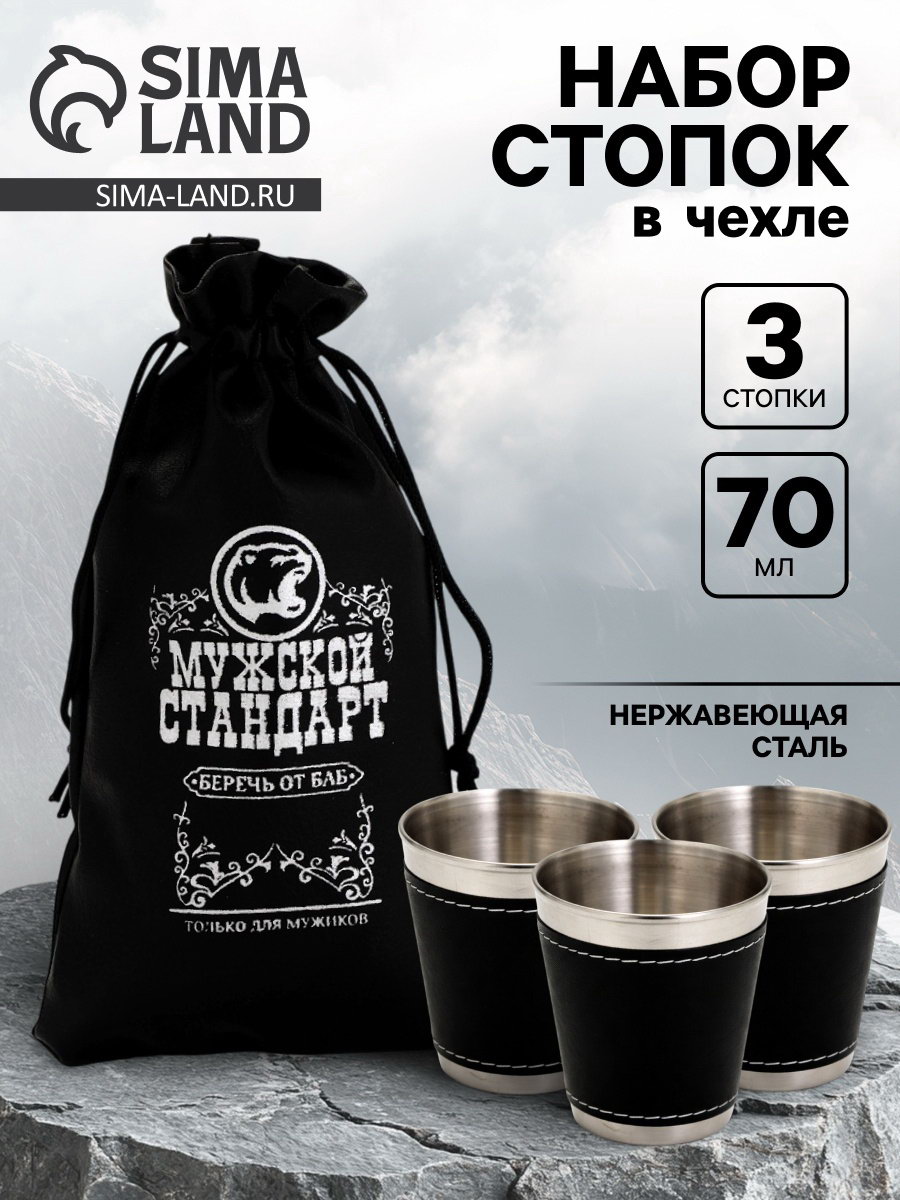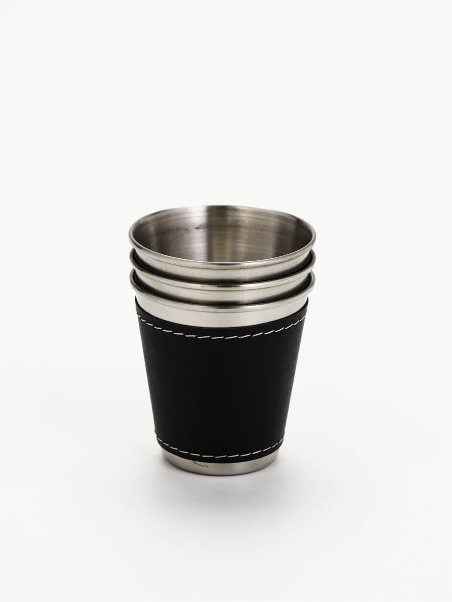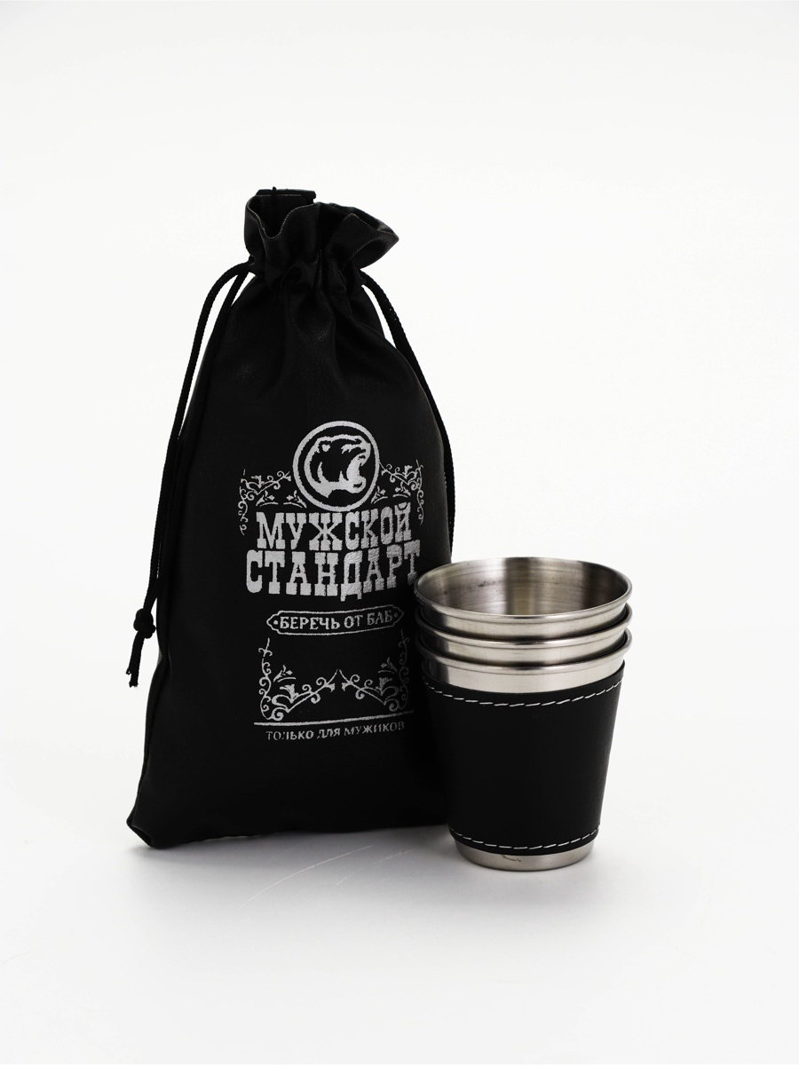 Стопки в чехле "Мужской стандарт": нержавеющая сталь, набор 3 шт.x70 мл, 4x16x7 см., Сима-ленд, Китай