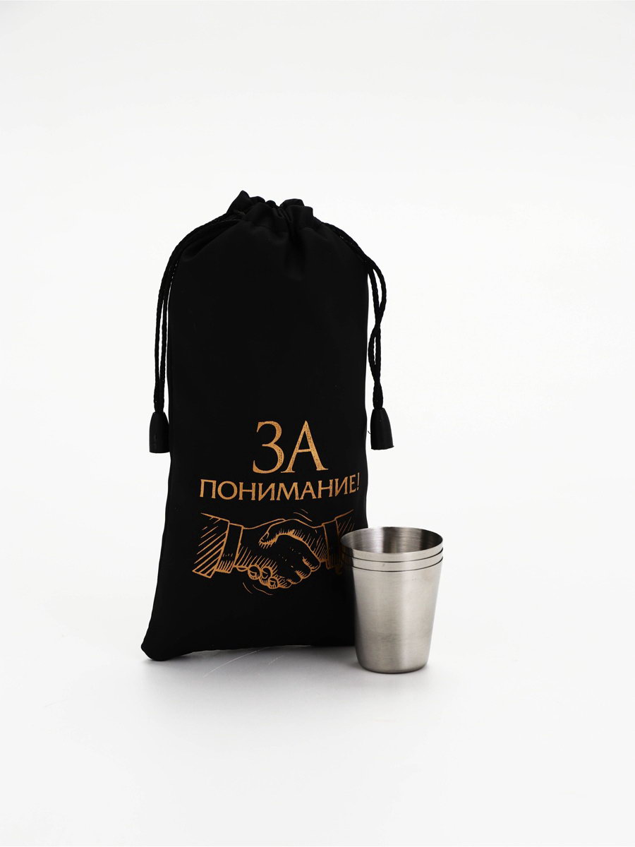Стопки в чехле "За понимание!": нержавеющая сталь, набор 3 шт.x30 мл, 4x16x7 см., Сима-ленд, Китай