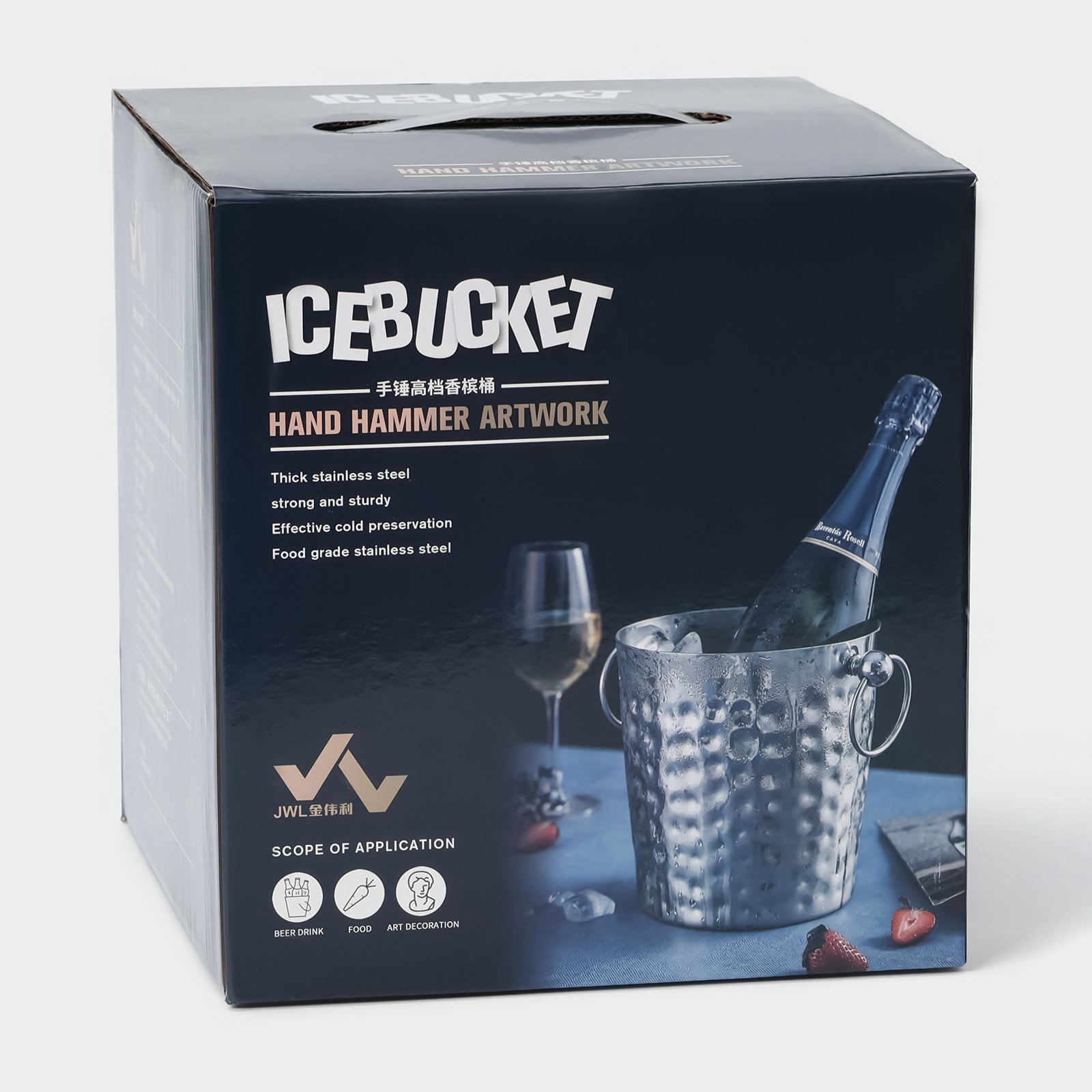 Ведро для льда "Чеканный", 5.2 л, 25x20x20.5 см, нержавеющая сталь, золотые ручки, 20x25x20.5 см., Китай