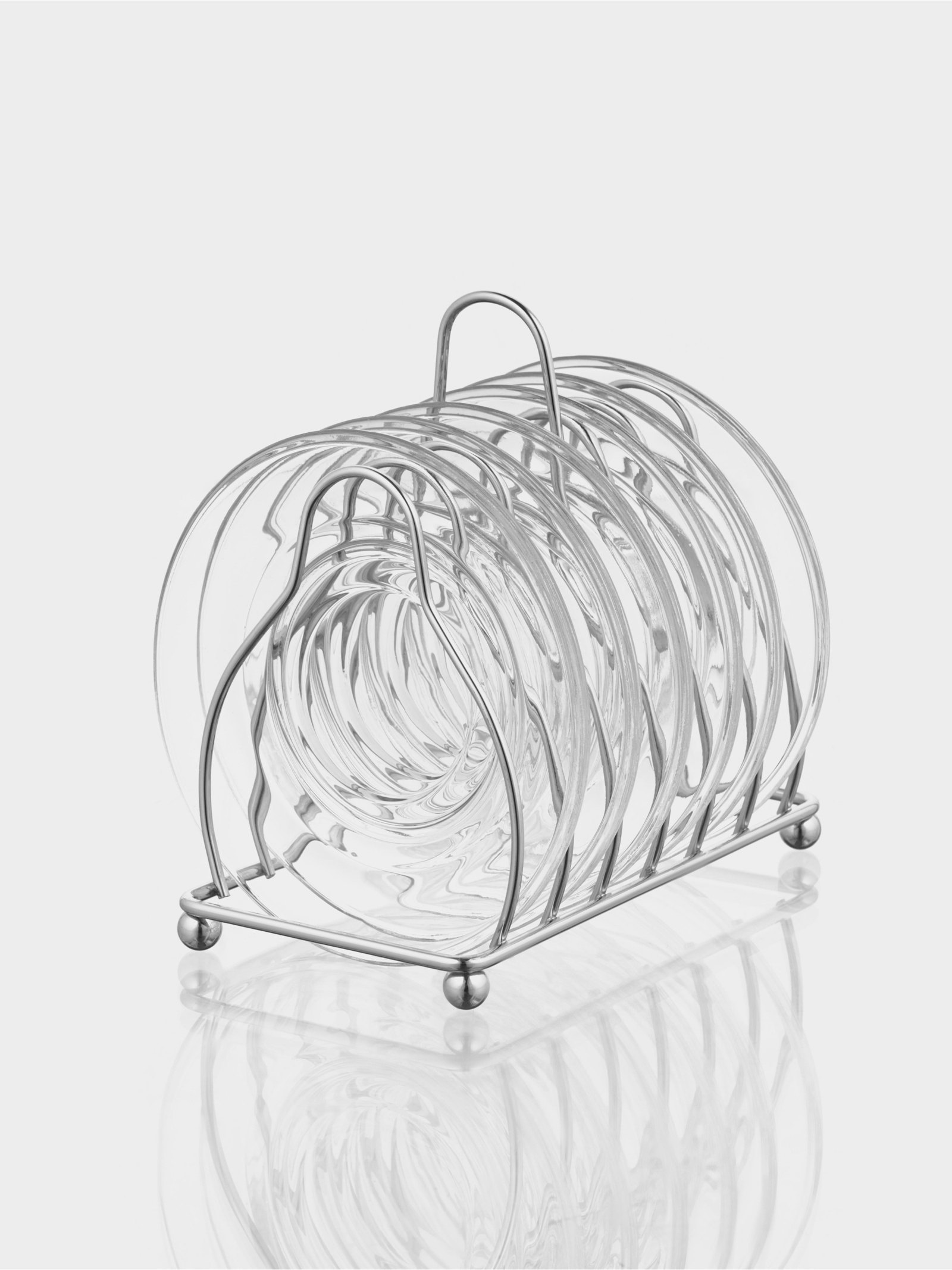 Размер упаковки: 17 x 16 x 16.5 см. tnved: 7013500000 Форма: Круг Цвет: Прозрачный Тематика: Однотонная Рисунок: Нет Текстура: Гладкая Особенности: На подставке Можно использовать в СВЧ-печи: Да Можно мыть в посудомоечной машине: Да Набор из шести стеклянных блюдец на металлической подставке это решение для тех, кто ценит порядок и элегантную простоту на кухне. Прочный держатель надёжно фиксирует стопку, а прозрачное стекло гармонично впишется в любую сервировку. Преимущества