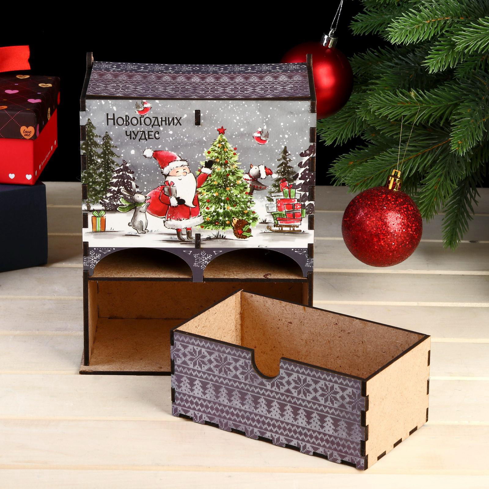 Новогодний чайный домик "Дед Мороз и Снеговик", 20x15x8.5 см, 20 см., РОССИЯ