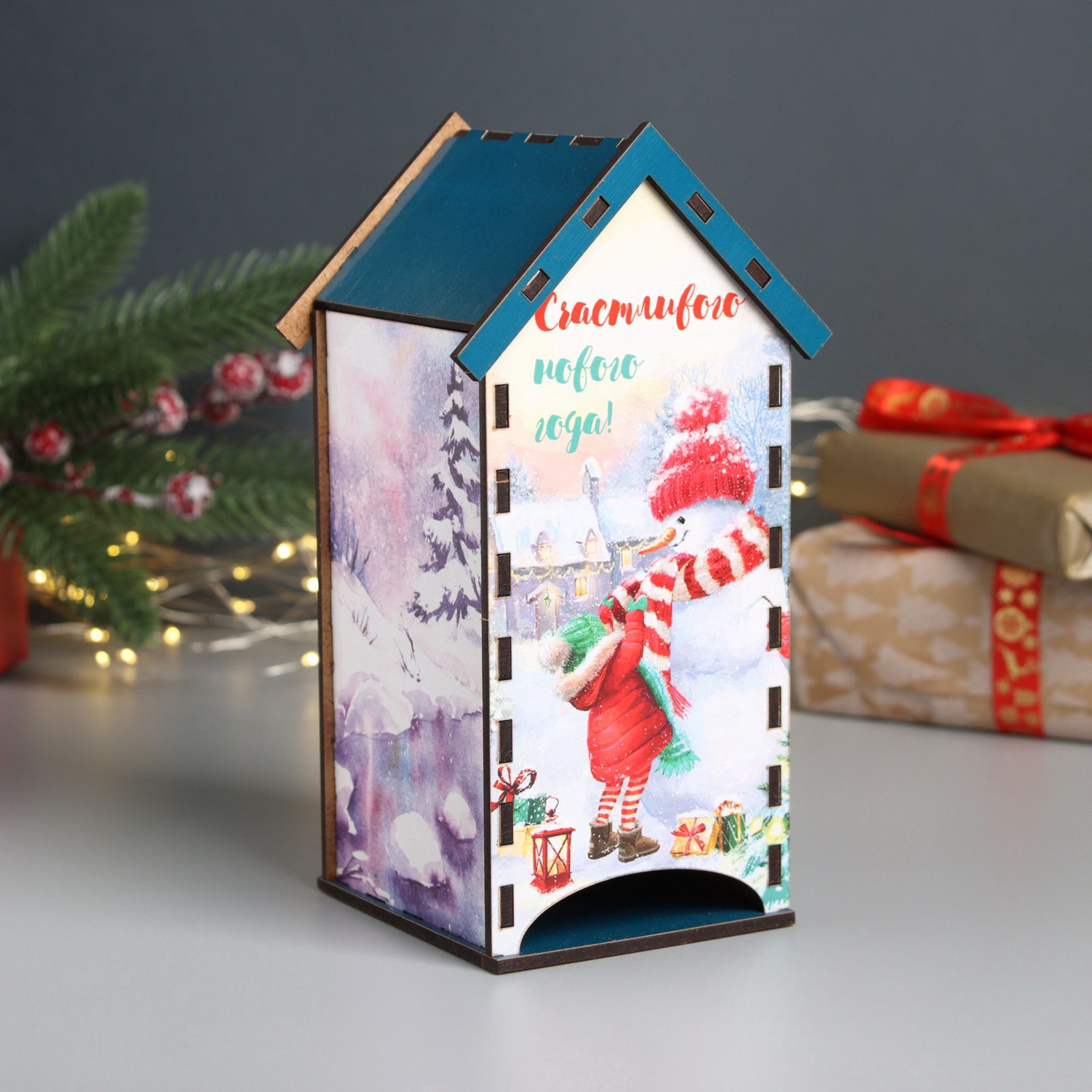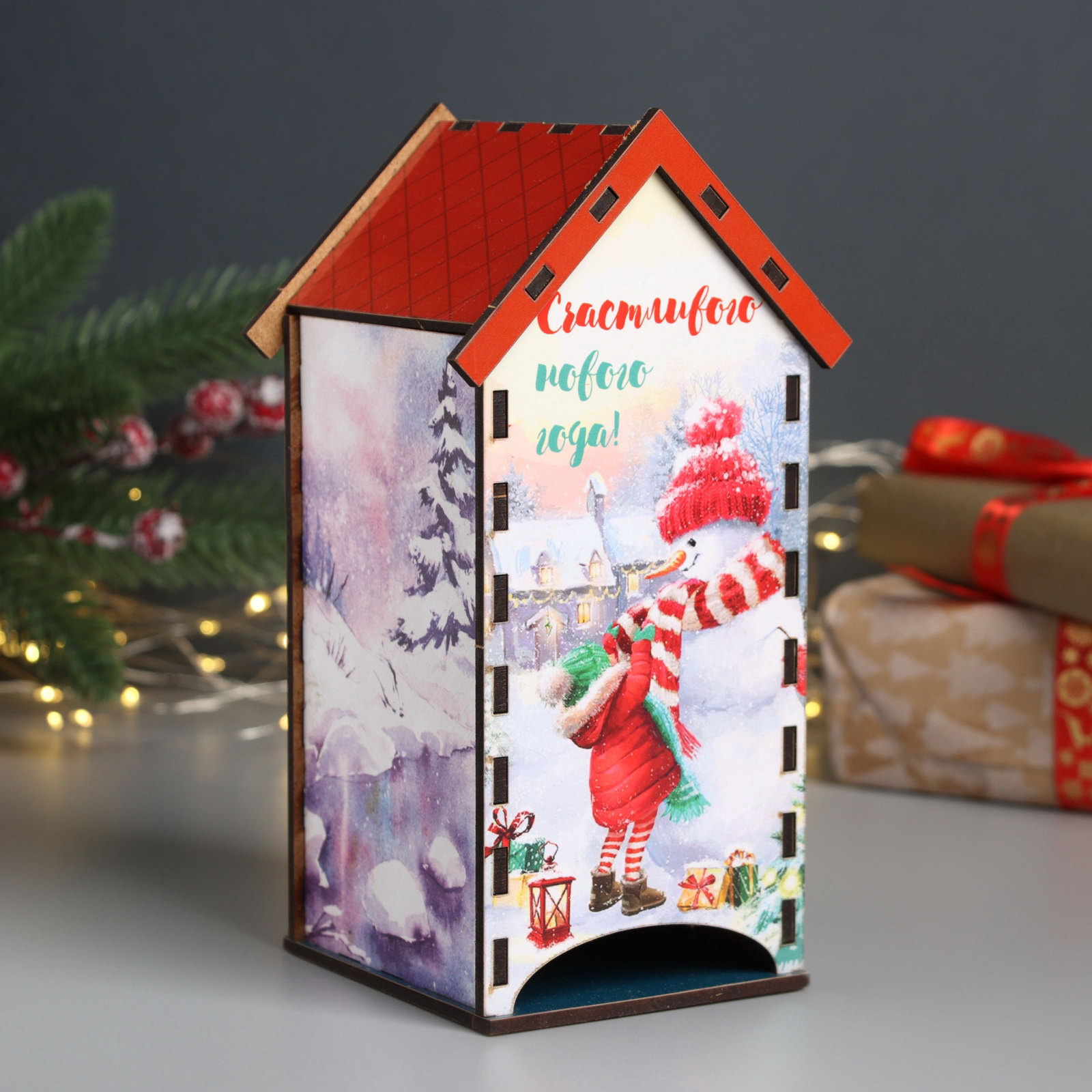 Новогодний чайный домик "Счастливого НГ" 20х10.5х10 см МИКС, Россия